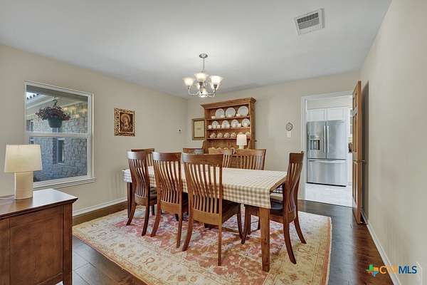 - All Bedrooms Down, Beamed Ceilings, Breakfast Area, Breakfast Bar, Ceiling Fans, Dining Area, Double Vanity, Entrance Foyer, Granite Counters, High Ceilings, Main Level Primary, Multiple Dining Areas, Natural Woodwork, Pantry, Primary Downstairs, Recessed Lighting, Separate Formal Dining Room, Sitting Area In Primary, Vaulted Ceilings, Walk In Closets