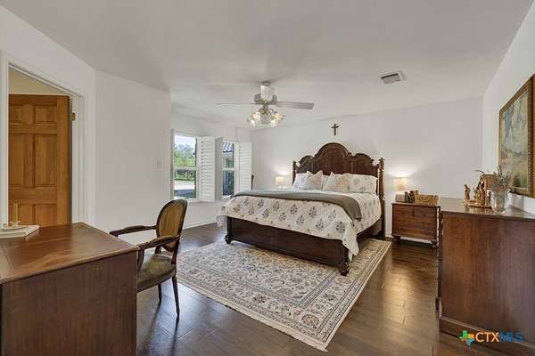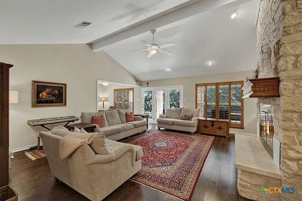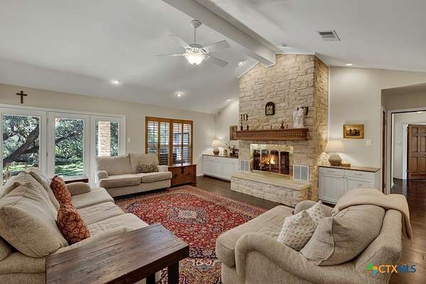 A Rare Hill Country Retreat on 7 Oak-Strewn Acres. Tucked away just outside the San Marcos city limits in the desirable Country Estates subdivision, yet mere minutes from the heart of town, 830 Palomino is a truly one-of-a-kind estate that blends Hill Country charm, refined living, & wide-open freedom. Set on two adjoining tracts totaling 7 acres, this extraordinary property offers unmatched privacy, breathtaking oak trees, & the best of both worlds: serene country living with quick access to shopping, dining, the river, Texas State University, & more. At the center of the property is a stunning 3-bedroom, 3-bath Texas limestone home featuring all four sides of native stone & crowned with a striking Spanish clay tile roof. Inside, you'll find elegant updates like granite countertops, sandstone tile, & stainless steel appliances in the kitchen, complemented by custom woodwork & plantation shutters throughout. The living room is a showstopper - spacious, open, & anchored by a floor-to-ceiling limestone fireplace beneath a vaulted ceiling. It's warm, timeless, & ready for unforgettable gatherings. Additional highlights include: A formal dining room that could double as a home office A spacious master suite with a flexible sitting area ideal for a nursery, gym, or studio A master bath with double vanities, a walk-in shower, & private toilet area Greenhouse, chicken coop, & raised garden beds perfect for gardeners and homesteaders TWO shops: a 676 sq. ft. workshop, & a massive 1,200 sq. ft. building with a loading dock, ramp, covered parking, and RV outlet With no HOA, mature live oaks throughout, a neighborhood pool & tennis courts, this property offers a lifestyle that is rarely available - quiet, spacious, upscale, & flexible. Whether you're looking for a high-end homestead, multi-use property, or a private sanctuary just minutes from town, 830 Palomino delivers. Schedule your showing today - opportunities like this are few and far between.