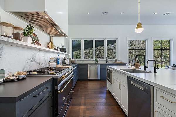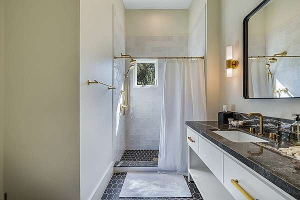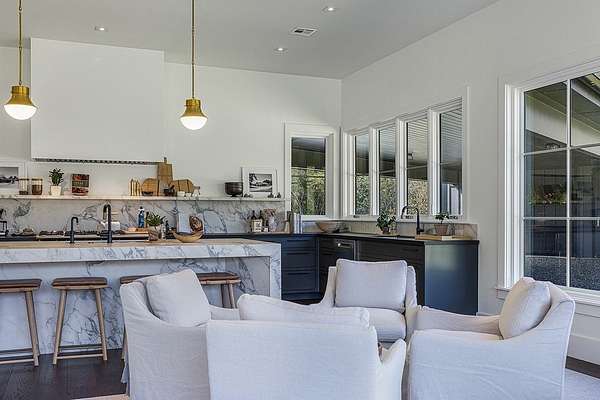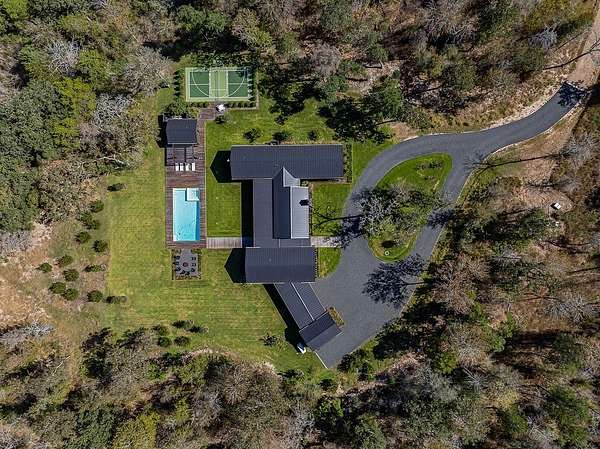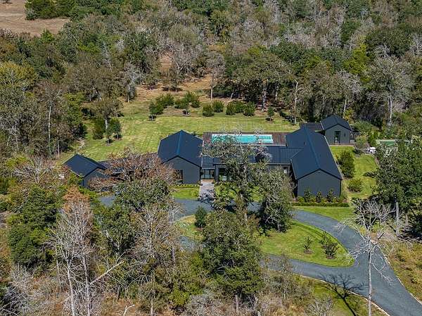 Tucked away minutes from Round Top, is a 15.57 acre private paradise, where a winding driveway leads to a captivating newly built modern farmhouse. Custom steel doors front this exceptional residence and walls of windows allow for rich, natural light to flow throughout the home. The Dining Wing provides a harmonious setting for both intimate family gatherings and grand-scale entertaining. The expansive living area is elegant yet invitingly comfortable with the fireplace a cozy focal point. A separate wing with 4 en-suite bedrooms includes the primary bedroom with views of the pool and a walk-in closet. The backyard haven creates an oasis of tranquility with a sparkling pool, flex room, firepit and pickleball court. This luxurious property is being offered turnkey and all within minutes of Round Top!