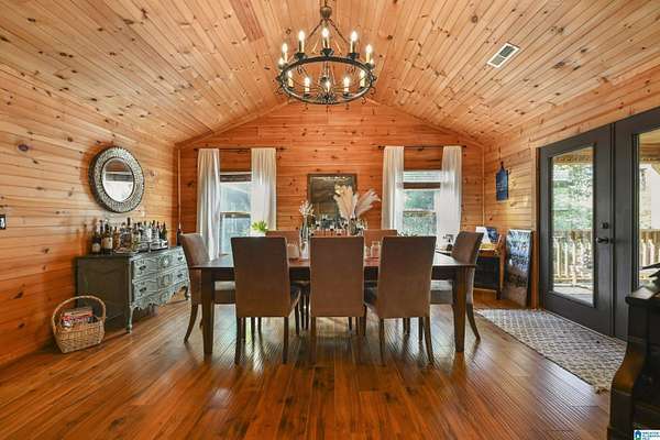 RARE FIND! 8+ Acres with a MOVE IN READY home and an active stream, extensive wildlife with a "Tree House Feel". This property is a MUST SEE! This gorgeous 4 bed 2.5 bath home features a wooden stove, custom built-ins, hardwood floors, and a large covered back deck. The spacious kitchen features an island with breakfast bar, office area, double oven, freshly painted cabinets, pantry, and more! Boasting an open concept, this home is ideal for entertaining. The large master suite, on the main level, has access to the back deck, his and hers closet, and a double vanity. Basement features home theater with AMAZING sound and light dimmer, three generously sized spare bedrooms with closets to suit. Also located in the basement is the den/family room, a full sized bathroom, and access to the covered patio. Follow the creek down to a campsite with a fire-pit, perfect for those fall bonfires! This property also features a shooting house, chicken house, fenced in area, and storage for wood.