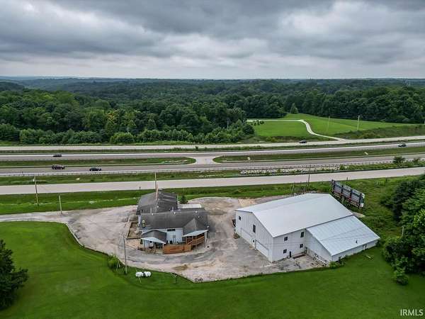 A landmark property on 2 lots offering great visibility from I-69 with 30,000+ vehicles passing by daily. With easy access from I-69 exit 125, the location allows you to be the first business you see as you arrive or, as you leave Bloomington! This unique property has been in continuous commercial use in retail/office/warehouse operations and as a residential dwelling space (with new carpet & ready for occupancy) creating a great opportunity to live on the premises or have a manager residing on-site. Zoned Limited Business, the most prominent tenant has been Parker Pools. Currently home to both an existing business and a residential tenant, leases are available upon request and possession is available at closing. There are 2 buildings on the premises as well as a 40' container storage space. The main building as it is used today allows for over 1300 SF of showroom space with a total of 1797 SF for business use and an additional apartment/home with separate entrance that is approximately 1800 SF with 2 Bedrooms and 2 1/2 Baths, full kitchen, stone fireplace, and many other amenities to make living on-site comfortable and convenient. The second building is warehouse space with 4700 +/- SF of floor space on the main level and 1,000 +/- SF in the loft space. Built in 1988, this building has a 20' ceiling and 3 - one-ton, ceiling-mounted chain hoists! 2 lots allow for plenty of parking. Additional property and building specifications are attached.