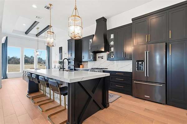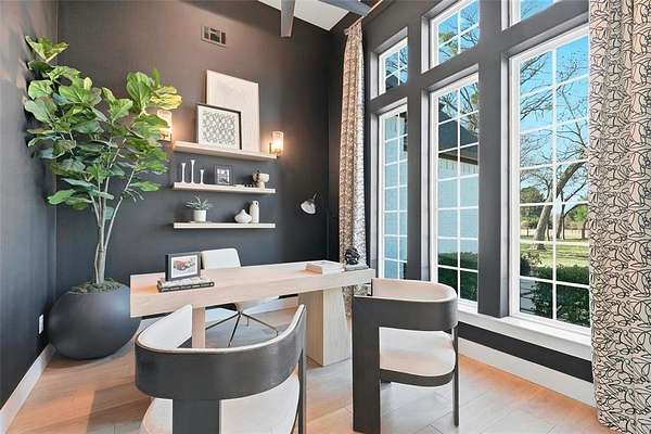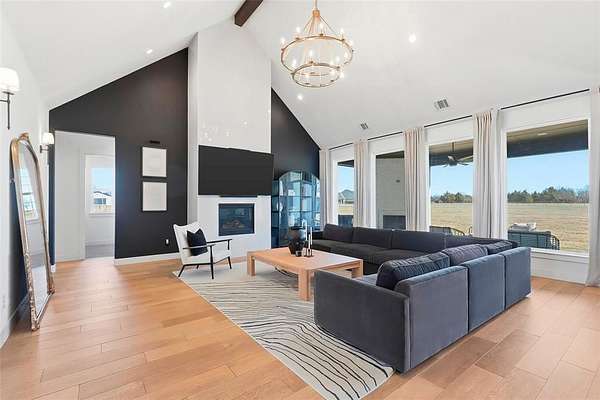 Step inside and you’re immediately welcomed by a dedicated office just off the entry and thoughtful architectural details that make every space feel elevated and intentional. The spacious living room is filled with natural light from large custom windows and features soaring cathedral ceilings plus a showstopping floor-to-ceiling porcelain tile gas fireplace. Designed for both everyday living and entertaining, the chef’s kitchen offers custom cabinetry, a large pantry, generous counter space, a gas cooktop, and a pot filler. The dining area flows effortlessly to the covered outdoor patio, where you can grill, unwind, and enjoy nights by the outdoor fireplace under the stars. Virtual walk through tour link available. Please request with your Real estate agent.