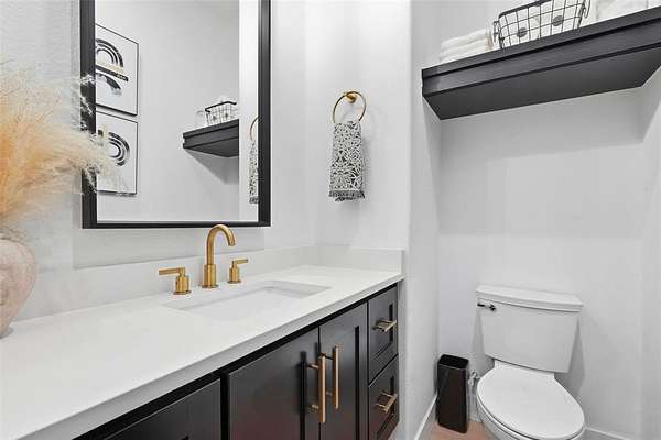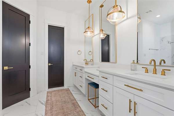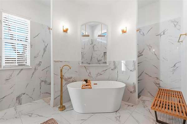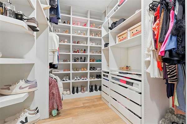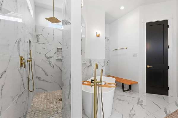 The primary suite is a true retreat with a spa-inspired bath featuring a soaking tub, oversized shower, and an impressive walk-in closet.