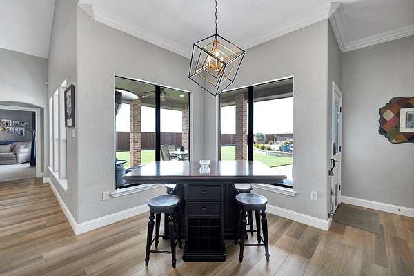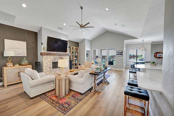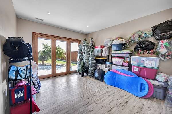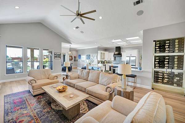 - Auto Garage Opener, Book Cases, Carpeting, Ceiling Fan(s), High Ceilings, Pantry, Propane Tank-Owned, Reverse Osmosis-Owned, Security System-Owned, Skylight(s), Speaker(s) (permanent), Tile Flooring, Water Softener-Owned, Wood Shutters