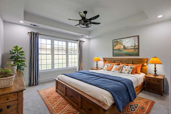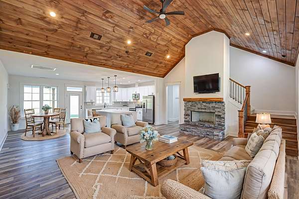 Custom-built home on 5 acres in Wilson County, minutes to Lebanon Square and I-40, offering a smart layout that lives mostly on one level with only a bonus room and full bath upstairs. Inside, enjoy quartz countertops, custom cabinetry, warm wood accents, a spa-style primary bath with soaking tub and walk-in tile shower, plus a cozy wood-burning fireplace for chilly evenings. The primary suite opens to a covered patio with peaceful valley and rolling-hill views, creating a private, scenic backdrop. Outside features include generous road frontage, an oversized two-car garage, and multiple covered outdoor spaces for relaxing or entertaining.