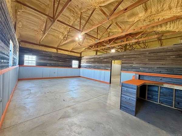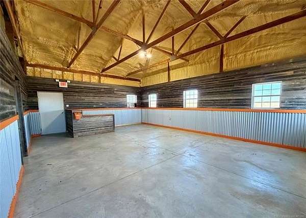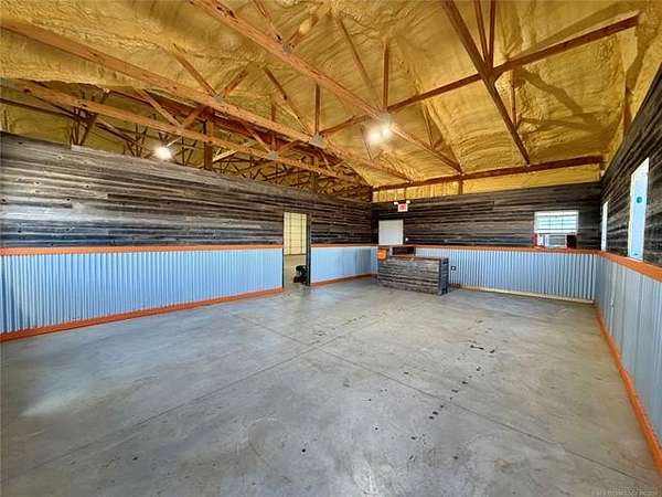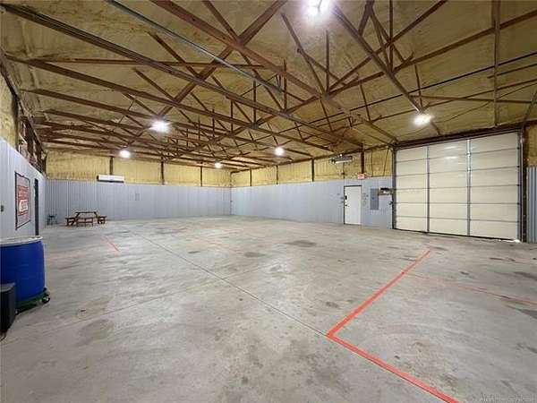 Versatile 3,000 sq. ft (CH) spray-foam insulated metal building situated on 3.46 acres (CH) with an additional 1.86 (CH) acres included 5.32 acres (CH) m/l total acres), offering excellent visibility just off 51st St. frontage. Zoned agricultural, the building features an open-span interior with reinforced concrete floors, exposed wood trusses, and two 14-ft overhead loading doors allowing access for trucks, trailers, and equipment. Interior amenities include two mini-split cooling units, and an additional heating unit, along with a finished office/check-in area with rustic wood accents and a covered front porch entry. Previously used as a farmers market retail space, the property offers flexible potential for agricultural retail, vendor markets, warehouse use, events, workshop space, or equipment storage. Rural water available. No water or septic currently installed. Schedule a showing today to explore the possibilities this unique property offers.
