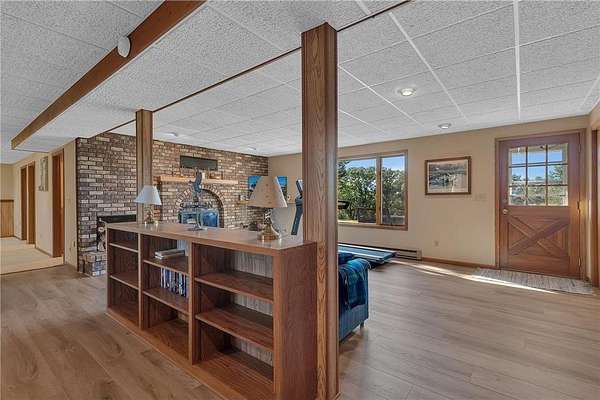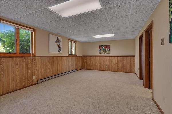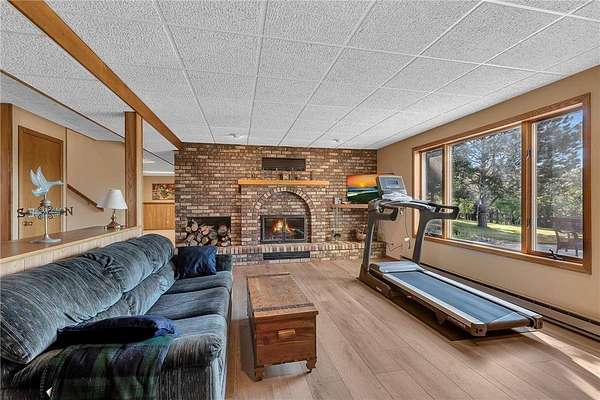 The lower level is made for entertaining and relaxing, with a large family room complete with a wood-burning fireplace and a wet bar. Walk right out to the backyard patio and enjoy the serene outdoor space--ideal for hosting gatherings or simply enjoying nature.