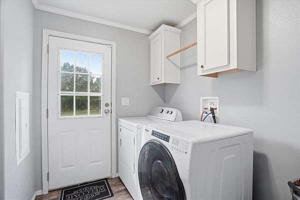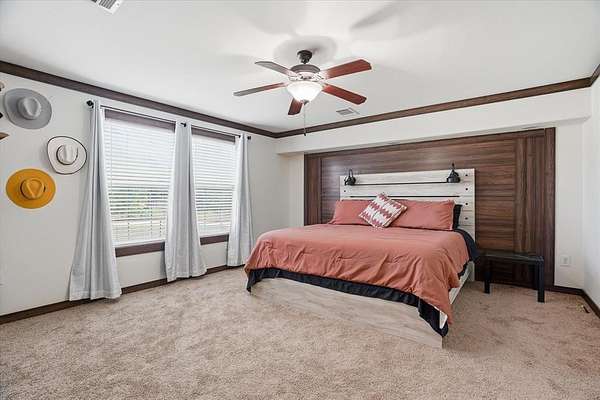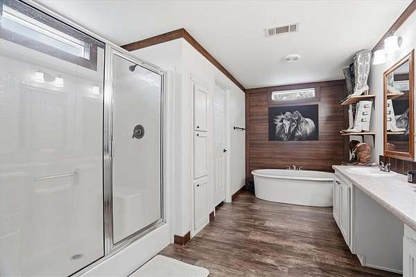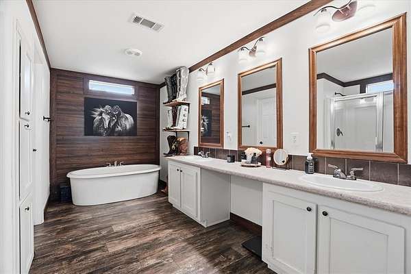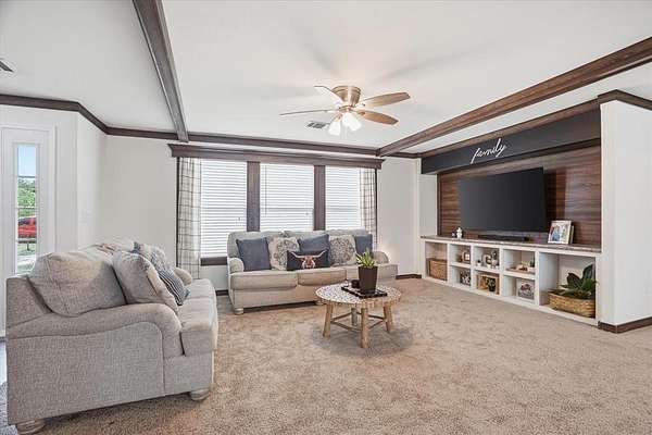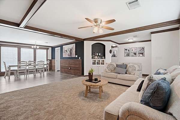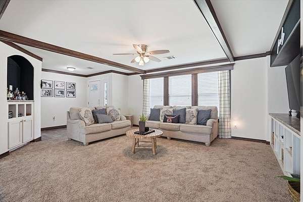 Beautiful 3 Bedroom, 2 Bath Home situated on approximately 2 acres in the peaceful Country Manor community. Built in 2017, this property stands out with thoughtful design, custom wood accents, built-ins, and abundant storage throughout. Step inside to an inviting open-concept layout filled with natural light, featuring a spacious living area with custom entertainment wall and seamless flow into the kitchen and dining space, perfect for everyday living and entertaining. The kitchen offers an oversized island, ample cabinetry, and excellent functionality, complemented by stylish finishes and a barn-style door that adds character. The primary suite is generously sized and features dual sinks, a garden tub, separate shower, and a spacious walk-in closet. The split-bedroom floor plan provides added privacy, while the secondary bedrooms are well-sized and include walk-in closets. Throughout the home, you’ll find unique touches such as wood ceiling beams, built-ins, and decorative niches that elevate both style and functionality. Enjoy approximately 2 acres of land with a blend of open space and mature trees, offering privacy and endless possibilities, whether for outdoor living, recreational use, or future improvements. Located outside city limits with no HOA, this property offers the perfect balance of country living with modern comfort. Schedule your showing today!