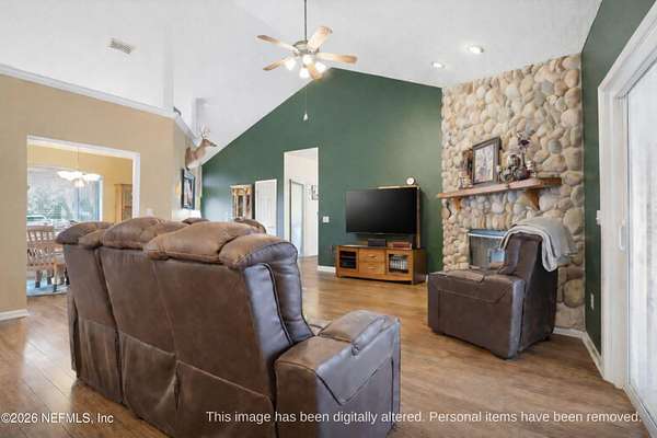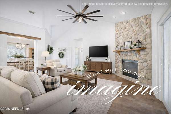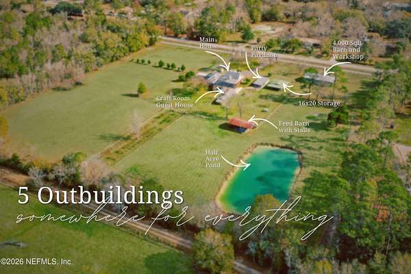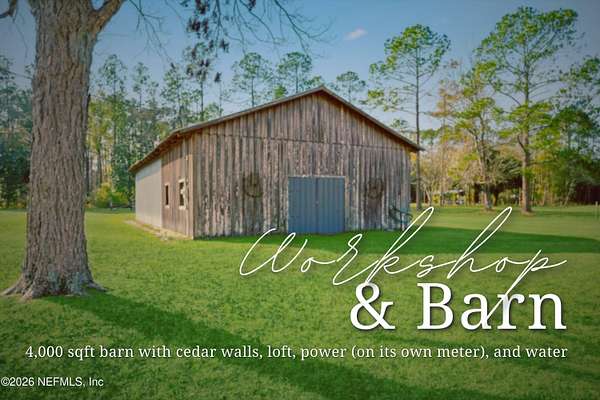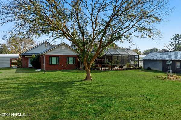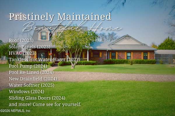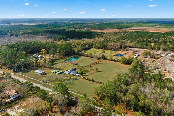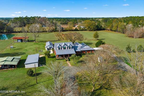 Set on 11 beautiful, fenced acres just outside Glen St Mary, this brick home offers the rare combination of peaceful country living and everyday convenience. This is where families gather naturally, weekends stretch longer, and home finally feels like a retreat. Loved all these years by the original owners, the pride in ownership shows in how meticulously it was maintained and the carefully chosen updates. This home carries a sense of care you can feel the moment you arrive. Nearly every major system has already been updated-roof, solar panels, HVAC, windows, septic, pool, and more-so you can move in with confidence and focus on enjoying the life you came for. Inside, vaulted ceilings and warm bamboo floors create an inviting, easy flow. The living room is centered around the tall stone fireplace. Overlooking the living room is the spacious kitchen is designed for real living, with beautiful solid wood cabinetry, an island with additional sink, and plenty of space to taste test and linger. The primary suite has seating area beside the sliding glass doors leading to the pool, and a spacious bathroom with a huge walk in closet. Several flex rooms, with spaces for an office can adapt beautifully to work, guests, and gathering. But the show stopper of the home is the lovely back porch and recently relined saltwater swimming pool with new pavers and enclosed in a screened in bird cage. Open the sliders and the party spills from the great room out onto the porch and deck. Beyond the Birdcage the country lifestyle truly unfolds. Eleven cross-fenced acres, vineyard, blueberries, multiple outbuildings, barns, workshops, entertaining pavilion, create space for hobbies, hosting, and future possibilitieswithout sacrificing comfort or convenience. This home has the kind of abundance that doesn't shout, it's a calm quiet space with everything you need and want. To make this house into YOUR HOME we are offering $15,000 at closing with an acceptable offerperfect for paint and lighting updates before you move in. (Be sure to include this provision in your offer) If you've been tempted by the country lifestyle but you worry about being too from "civilization", do not worry! This home is in the middle of nowhere and a short drive to everything. The small towns of Glen St Mary and Macclenny are just 5-10 minutes away. There are plenty of shops, restaurants, churches, schools, hospital, libraries, salons and mechanics convenient to everyday life. Anything else you want? Fine dining, museums, zoo, shopping, beaches, NFL stadium, international airport - you are just a few turns from I-10 and Jacksonville - 30 minutes away. Somewhere between quiet mornings, wide-open land, and evenings spent outside, life slows down and starts to feel exactly right. If you hear quiet country roads calling for you, don't wait. Come see this home before someone else takes it.