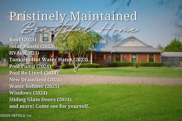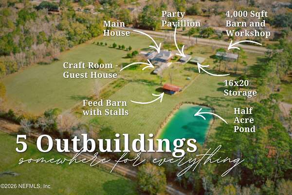 Set on 11 beautiful, fenced acres just outside Glen St Mary, this brick home offers the rare combination of peaceful country living and everyday convenience. This is where families gather naturally, weekends stretch longer, and home finally feels like a retreat. Loved all these years by the original owners, this home carries a sense of care you can feel the moment you arrive. in how meticulously it was maintained and the carefully chosen updates. Nearly every major system has already been updated-roof, HVAC, windows, septic, pool, and more-so you can move in with confidence and focus on enjoying the life you came for. Inside, vaulted ceilings and warm bamboo floors create an inviting, easy flow. The living room is centered around the tall stone fireplace. The spacious kitchen overlooking the loving room is designed for real living, with beautiful solid wood cabinetry, an island with additional sink, and plenty of space to taste test and linger. The primary suite has a seating area beside the sliding glass doors leading to the pool, and a spacious bathroom with a huge walk in closet. Several flex rooms can adapt beautifully for an office to work, guests, and gathering. But the show stopper is the lovely back porch and recently relined saltwater swimming pool with new pavers and enclosed in a screened in bird cage. Open the sliders and the party spills from the great room out onto the porch and deck. Beyond the birdcage the country lifestyle truly unfolds. Eleven cross-fenced acres, vineyard, blueberries, multiple outbuildings, barns, workshops, entertaining pavilion, create space for hobbies, hosting, and future possibilitieswithout sacrificing comfort or convenience. The she-shed craft room is concrete block construction with a newer roof and already outfitted with a bathroom - so easy to turn it into a guest house!This home has the kind of abundance that doesn't shout, it's a calm quiet space with everything you need and want. To make this house into YOUR HOME we are offering $15,000 at closing with an acceptable offerperfect for paint and lighting updates before you move in. (Be sure to include this provision in your offer) If you've been tempted by the country lifestyle but you worry about being too from "civilization", do not worry! This home is in the middle of nowhere and a short drive to everything. The small towns of Glen St Mary and Macclenny are just 5-10 minutes away. There are plenty of shops, restaurants, churches, schools, hospital, libraries, salons and mechanics convenient to everyday life. Anything else you want? Fine dining, museums, zoo, shopping, beaches, NFL stadium, international airport - you are just a few turns from I-10 and Jacksonville - 30 minutes away. Somewhere between quiet mornings, wide-open land, and evenings spent outside, life slows down and starts to feel exactly right. If you hear quiet country roads calling for you, don't wait. Come see this home before someone else takes it.