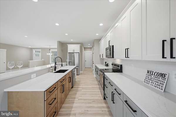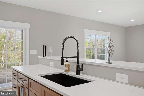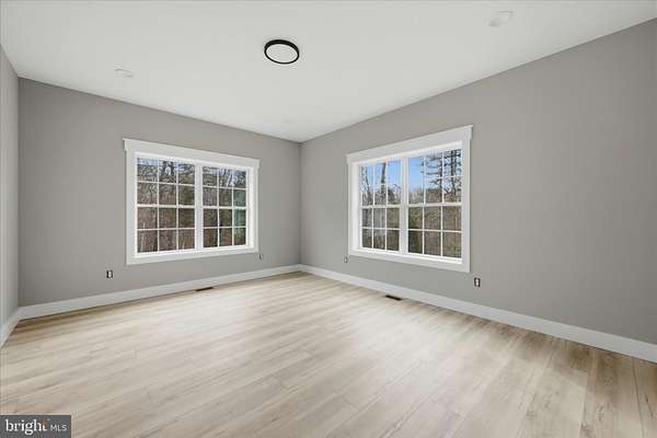 Beautiful new construction home on 2.5 private acres offering one-level living in a peaceful, tree-filled setting. This thoughtfully designed home features an open floor plan with 9-ft ceilings throughout, custom trim work, solid wood doors and luxury vinyl plank flooring throughout the entire home. The spacious kitchen is a standout with quartz countertops, upgraded three-tone cabinetry, a large island, and pantry, perfect for entertaining or everyday living. Flexible space can be used as a formal dining room or home office. All bedrooms are generously sized and include walk-in closets, while the bathrooms also feature quartz countertops for a cohesive, high-end finish. Enjoy the outdoors from the covered front and back porches, surrounded by mature trees and a quiet setting. The insulated, painted, and finished garage includes a 16x8 garage door and adds extra functionality and comfort. A perfect blend of modern finishes, privacy, and convenience-this home is ready to impress.