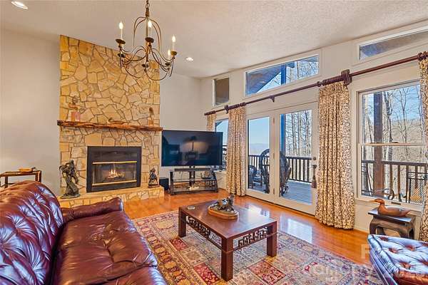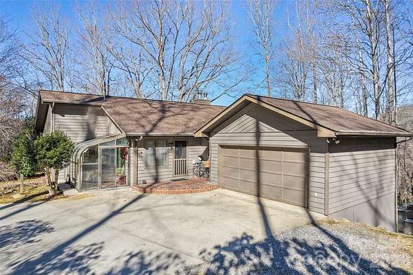 Experience sweeping long-range mountain views from a peaceful mountain setting, where rustic charm meets modern comfort. This welcoming retreat features a creek located on the property, raised garden beds, and a relaxing outdoor environment. Inside, the open floor plan seamlessly connects the kitchen and living room, where the fireplace creates a cozy gathering space and doors open to the covered porch for easy indoor-outdoor living. A bright sunroom provides the perfect place to unwind while enjoying the surrounding views. The kitchen features custom wormy chestnut cabinetry, granite countertops, and a center island ideal for entertaining. The spacious primary ensuite offers comfort and privacy, while the finished basement adds flexibility with an additional bedroom, full bath, and walk-out access. A two-car garage, ample storage, thoughtful design throughout, and a whole-house generator add everyday convenience. Whether you're gardening, relaxing, or enjoying mountain life, this property delivers a wonderful blend of comfort, views, and Western North Carolina living-just 20 minutes from Dillsboro, Sylva, Bryson City, and Cherokee.