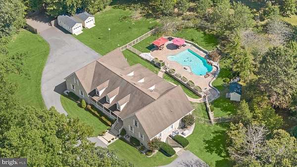 Discover the charm of this stunning sanctuary nestled on over 11acres that offers both tranquility and a convenient location close to every amenity imaginable. With 6 spacious bedrooms and 5.5 bathrooms, this residence is thoughtfully designed offering endless lifestyle options that include three main-level bedrooms, two upper-level bedrooms and a well-appointed apartment in the lower level with a second full kitchen and private entrance to the side car park area. The heart of the home features a sizeable family room defined by architectural columns, a central fireplace, and built-ins that transition seamlessly into an open plan and dining room. Adjacent to the dining and family rooms, the gourmet chef's kitchen stands at the ready for food prep complete with an island, upgraded countertops, walk-in pantry, professional appliances, gas cooking and an inviting peninsula breakfast bar. Gleaming hard wood floors and natural light stream from room to room in an open floor plan design and through windows treated with upscale plantation shutters. Outside, a retreat like oasis awaits with a heated, saltwater pool, water fountain and diving rock surrounded by multiple stamped concrete patios, paver garden beds, and lush landscaping including pear, apple and plum trees. In addition to professional landscaping, there is a fenced dog run, pool shed with electric service, generator, and two machine sheds. The oversized three car side loading garage offers upgraded 210-electic service, a work bench, two closets, a rear service door, and an epoxy floor. A wooded backdrop of trees and scenic vistas encircle this gorgeous 11.29-acre property where nature and equestrian pursuits are welcome. With its endless lifestyle options, glistening saltwater pool and picturesque views all around, this home is a perfect blend of luxury, relaxation, adventure and outdoor living. This home is not just a residence; it is truly a sanctuary!