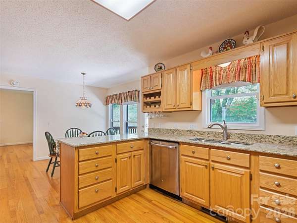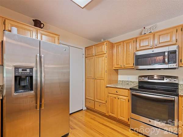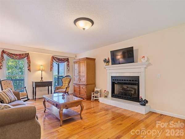 Long-range mountain views, the soothing sound of a rushing stream along the property line, and an unbeatable location just 700 feet from the Blue Ridge Parkway-or only 2 miles to a Parkway entrance-make this mountain home a rare retreat. Relax on the full-length front porch while enjoying the views and listening to the stream below. Inside, oak hardwood floors and solid construction create a warm, welcoming feel. The main level features a spacious living room with a gas log fireplace, formal dining room, half bath, and an eat-in kitchen with granite countertops, stainless appliances, and access to the open back deck-perfect for grilling and entertaining. Upstairs, the primary suite offers its own gas log fireplace, large closet, and ensuite bath with a soaking tub and walk-in shower. Two additional bedrooms, another full bath, laundry area, and an oversized 20x11 flex space or bonus room provide plenty of room for guests, hobbies, or a home office. Two parcels are included: the home sits on one parcel, while the second parcel features a large detached garage/workshop ideal for storage, projects, or recreational gear. Easy-maintenance vinyl siding, a 2021 roof, no HOA, no city taxes, and convenient access just 5 miles to grocery shopping and 7 miles to Main Street Waynesville complete this exceptional mountain property.
