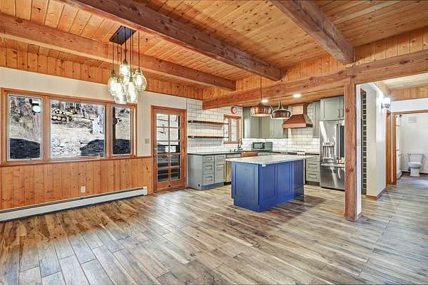 Need space? This large mountain home features 6/7 bedrooms, 5 bathrooms and storage galore! A separate apartment area has it's own entrance, kitchen, bath, and living area. The approx 2 acre property boarders the Santa Fe National Forest, and easily accessed by a county maintained road. Only a mile or so to a back gate of the Valles Caldera, and a 40 minute scenic commute to Los Alamos. Oversized 2 car garage gives you plenty of room for the toys. A sunroom on the front of the house opens to the large deck for outdoor enjoyment/entertaining. Hike out the back door into the woods, bike into the Caldera, or fish the streams in the area. This place has it all, and room for everyone!