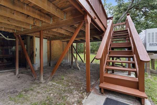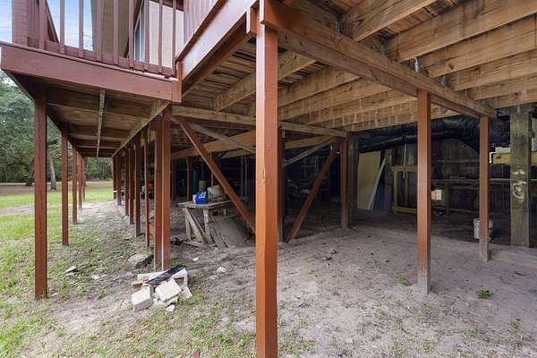 - Balcony, Covered Porch, Open Deck, Outdoor Lights, Pump House, Shed