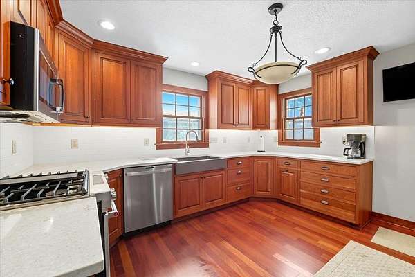 Est $2,310/moThis immaculate home needs nothing, just bring your belongings and settle right in. Every detail has been meticulously maintained offering piece of mind and modern comfort. Located on a hard surface road this property boasts an exquisite Cherry kitchen with granite tops, cherry flooring and matching cherry trim throughout the main floor. The upstairs is finished to match in a natural maple finish. A cozy patio with stone fireplace is perfect for relaxing or entertaining. Enjoy the tranquility of approximately 1.75 acres offering both privacy and convenience.