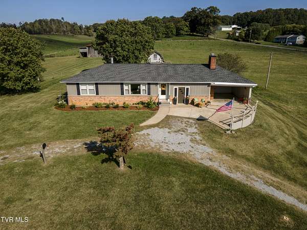 First Time on the Market - 1964 Ranch Home with Acreage. This charming one-level 1964 ranch home with a partial basement is being offered for the very first time. Nestled on 8.29 beautiful acres, this property combines the peace of country living with the convenience of being close to all the amenities of the Greater Tri-Cities area. The home features three bedrooms, one bathroom, and a dry, full basement with plenty of potential. The land is a true highlight-completely cleared pastures with stunning mountain views, offering opportunities for a mini-farm, livestock, gardening, or future development. With abundant road frontage on two roads and multiple potential building sites, the possibilities are endless. Several outbuildings are already in place, perfect for storage, equipment, or farm use. If you're looking for land, views, and a home with room to grow-this property checks all the boxes!