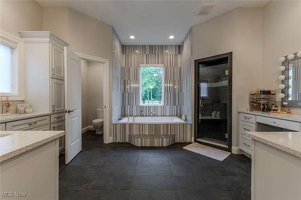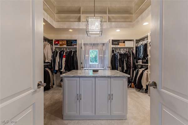 - Bookcases, Breakfast Bar, Built In Features, Chandelier, Eat In Kitchen, Entrance Foyer, Granite Counters, High Ceilings, High Speed Internet, His And Hers Closets, Kitchen Island, Multiple Closets, Open Floorplan, Pantry, Primary Downstairs, Sauna, Sound System, Stone Counters, Tray Ceilings, Wet Bar