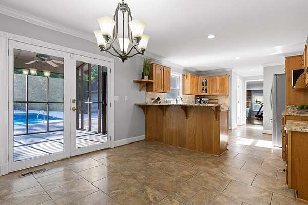 The private pond is stocked for your fishing relaxation with its own private pavilion on the waters edge.