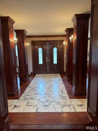 This beautiful Georgian style home offers a life of both privacy and luxury! With 7,787 sqft of finished space there is ample room to relax in peace in your home on 5.7 acres with beautiful mature trees and landscaping, a large pond, and plenty of grassy lawn as well! Take in the views including local wildlife through the floor to ceiling windows in the main level living room. This home boasts a main level with a grand tiled foyer flanked by formal dining areas on both sides and lavish cherry pillars! Also on the main floor is a large family room with a fireplace which is open to a breakfast nook and a spacious kitchen with cherry cabinets. The master suite features a fireplace as well as a den and a master bathroom with a large tub, a shower, and two vanities and walk in closets! Upstairs you will find a large loft with built in cabinet seating, 2 bedrooms with en-suite bathrooms, 2 bedrooms with an adjoined Jack and Jill bathroom, and one more bedroom currently used as an office! The fully finished basement could be its own independent living space with a complete kitchen, a full bath, a fitness room, a spacious bonus room, a large bedroom, a walk out patio, and two living room spaces featuring a dual sided free standing fireplace and built in shelving! All of this space also comes with the convenience of having a full laundry room on each level as well as generous storage areas including the spacious 4 car attached garage!