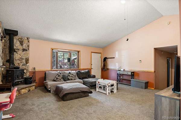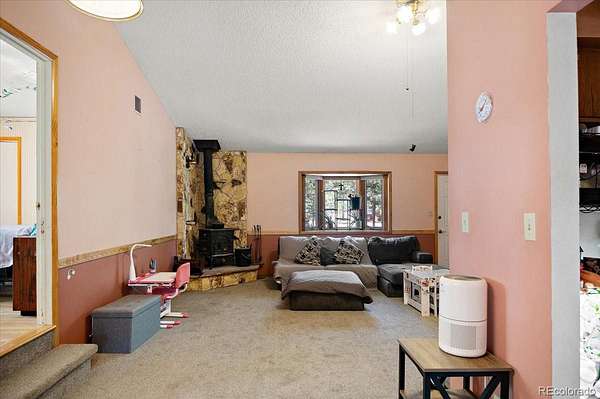 Discover this charming 3-bedroom, 2-bath retreat, perfectly nestled in the forest on nearly 7 private acres. Step inside to a welcoming great room featuring a cozy wood-burning stove and an open floor plan that flows seamlessly into the dining area overlooking the back patio and into the charming kitchen. Just off the kitchen is a bright office space, ideal for working from home.