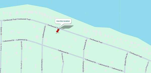 US-23 east to Straitsview Dr., then left onto Cordwood Trail. Go about a third of a mile and property will be on the left.