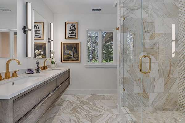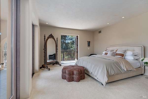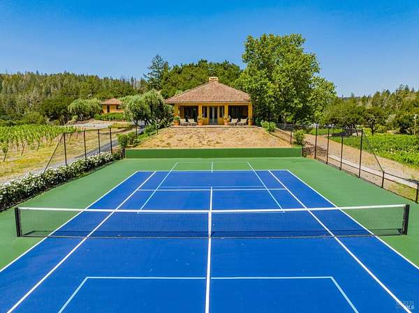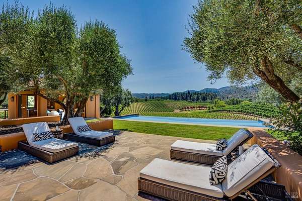 Nestled in the prestigious Knights Valley AVA, Bellisimo Vineyard Estate spans approx. 154 +/- acres across two legal parcels at 8320 and 8322 Franz Valley. This extraordinary property offers a rare combination of natural beauty, tranquility, a 30.5 +/- acre vineyard and rental income-generating potential projected at more than $500,000 from multiple homes and a stunning estate compound. With its unique multi-dwelling layout, the 6,214 +/- sq ft estate compound is ideally suited as a family retreat, corporate getaway, premium rental property, or a versatile blend of all three. Four additional residences totaling 7,088 sq ft offer further rental or employee housing potential. 36.1 +/- acres of unplanted gentle , soil rich open terrain that was previously planted to grapes, are perfect for horses, olives, and other crops or recreational activities. Designed by architect Sandy Walker and designer Erin Martin, the 8-bedroom estate features a tennis/pickleball court, pool house, Monte Alpi BBQ, fire pit, and a 50' infinity-edge pool with panoramic views. Additional highlights include two high-producing wells, a scenic reservoir for irrigation and frost protection, a large barn, and ample event parking, making this a versatile and income-rich offering in wine country.