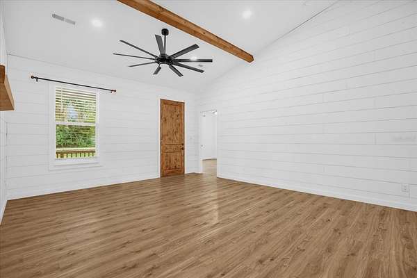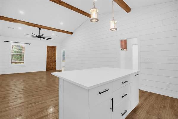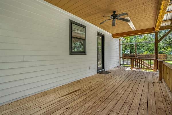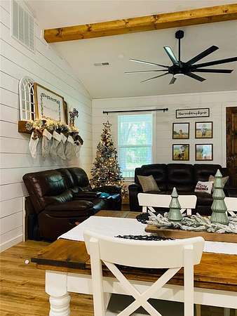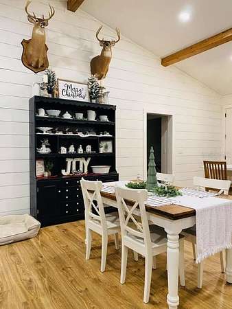 This beautifully designed 3 bedroom, 2 bath home (just 4 years young!) sits on over 3.5 acres of peaceful country living. From the moment you step inside, you'll be greeted by shiplap accents, exposed beams, vaulted ceilings, and rustic-style commercial-grade laminate flooring--all the touches that make this home warm, inviting, and stylish. Enjoy relaxing mornings or sunset evenings on the covered front and back porches, perfect for rocking chairs and good company. And yes--it comes with the durable METAL ROOF you've been hoping for! Inside, the open-concept great room and kitchen is ideal for entertaining, featuring stainless steel appliances, a large island with breakfast bar, and plenty of natural light. The oversized laundry room (washer & dryer included) adds everyday convenience.
