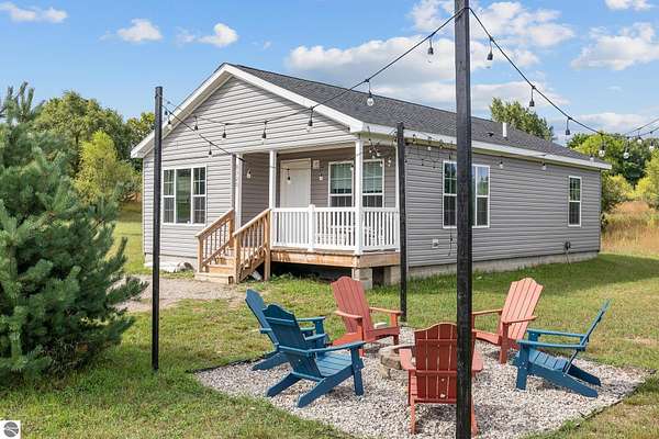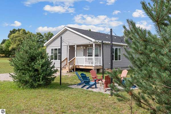 Nearly new 3-bedroom, 2-bath home on just under 2 acres, with an additional 3-acre parcel (with electric) also available. The back acreage includes the Rapid River, offering a serene natural backdrop and space for future possibilities. Currently used as a short-term rental, the property provides immediate income with strong potential for rental-income expansion--yet it's equally suited as a comfortable year-round residence. Inside, enjoy a private primary suite, open living areas, and a fire pit for evenings under the stars. Located only 4 miles from Torch Lake public access and 5 miles from the Torch River Nature Preserve, you'll have both peace and proximity to Northern Michigan's best recreation.