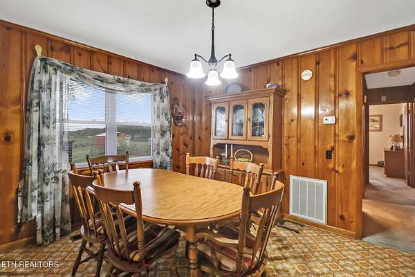 The property includes four barns with water and electricity already connected, plus an old well pump and natural gas on site. The brick farmhouse features 2,444 square feet of heated living space with a full basement. Built to last, the ranch-style home includes solid oak framing throughout and received a new roof approximately four years ago. The current owners acquired the property in 1964, and the farm has been exceptionally well maintained.