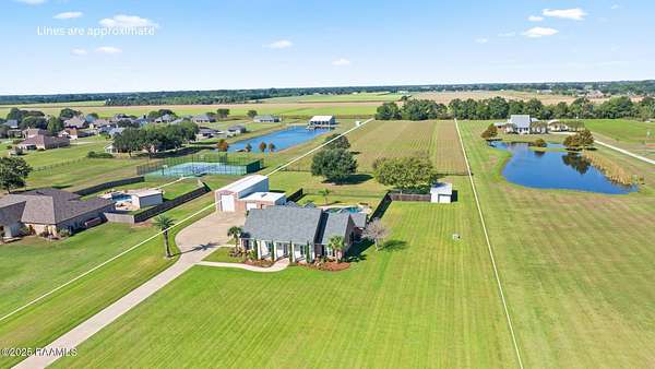 Location, location, location!! Lafayette 14 miles, Maurice 7.8 miles, Abbeville 5.6 miles, Acadiana Regional Airport NI 23 miles. Acerage, Barn, Shop, RV/Boat Shop/Storage, Enclosed Dog Kennel, Covered Boat Parking, Stunning 4-bedroom, 2.5-bath custom home situated on 6.764 beautifully maintained acres. Boasting 3,129 sq ft of living space, this home offers a split floor plan designed for comfort and flexibility. The spacious primary suite features a sitting area with serene views of the pool, creating a peaceful retreat. A large office with built-in desk and generous closet space could easily serve as a 5th bedroom. The upstairs game room offers two mounted TVs with individual cable hookups and can be used as a media room, bedroom, play room. Ideal flex space. The gourmet kitchen is a chef's dream, featuring a large island, commercial-grade appliances, a Sub-Zero refrigerator, and abundant cabinet storage. The laundry room has a sink and space for a freezer or refrigerator. Step outside to enjoy the fully fenced backyard, where you'll find a gorgeous pool surrounded by mature landscaping and a spacious patio perfect for entertaining. The property includes a 3-stall barn, large feed/tack room, RV shed( 2021), large shop , boat carport, and an AC-equipped dog run/kennel with weather protection. Property ideal for hobby farming or animal lovers. This home was built with solid plywood walls with numerous recent upgrades: all new windows (2021), new concrete driveway and parking area (2020), stove (2022), pool pump (2025), landscape with irrigation (2021 & refresh 2025), and a roof that's approx. 8 years old, high end engineered wood flooring, hot water heaters 2025, One AC replaced 2022. With high-end finishes, flexible living spaces, and outdoor amenities rarely found in one property, this home is truly one-of-a-kind. Move-in ready and meticulously cared for--don't miss your opportunity to own this exceptional property.