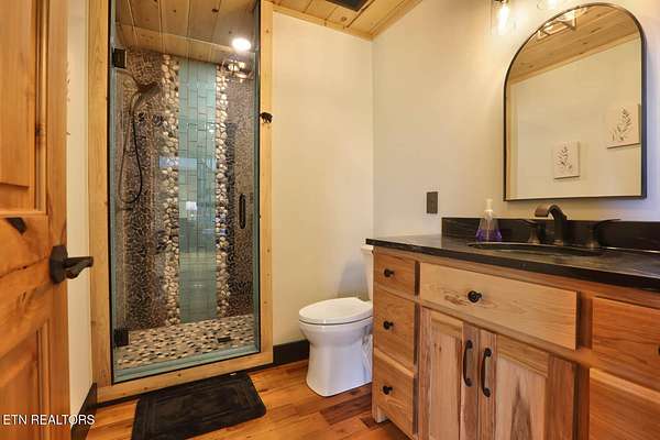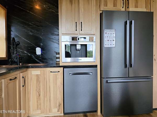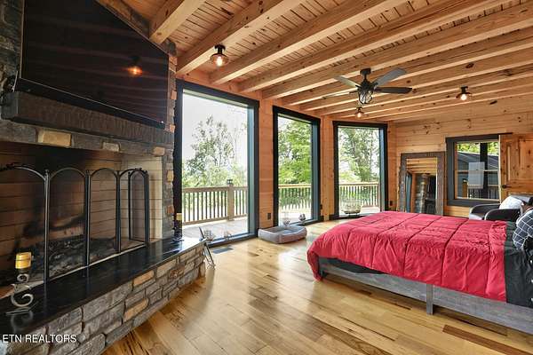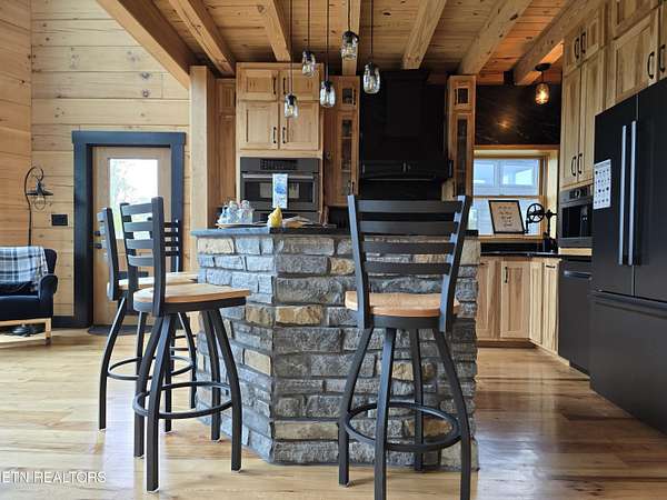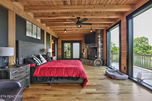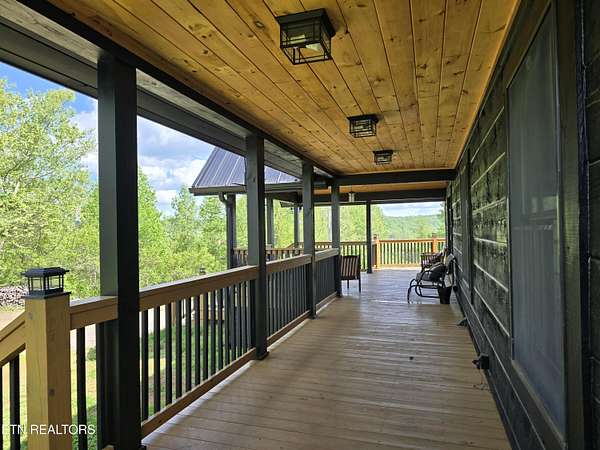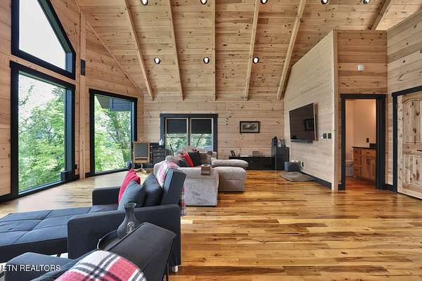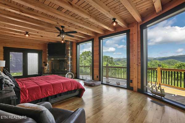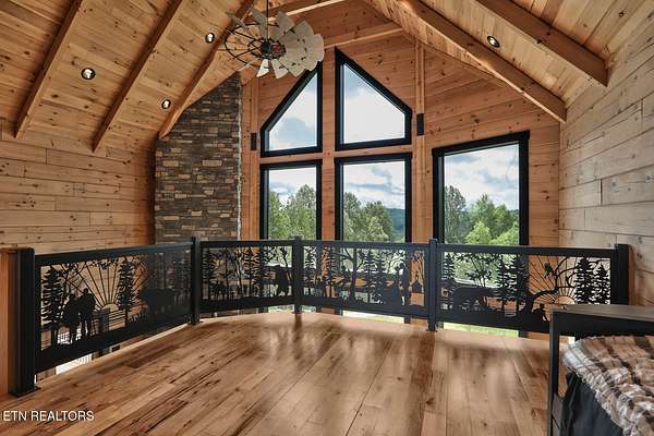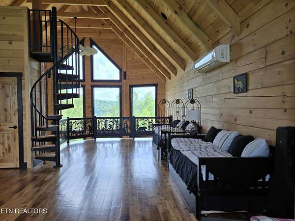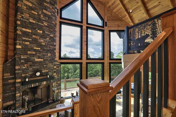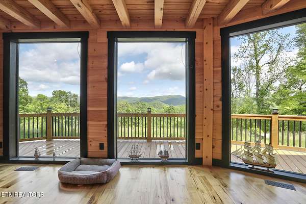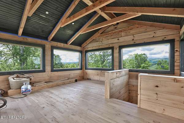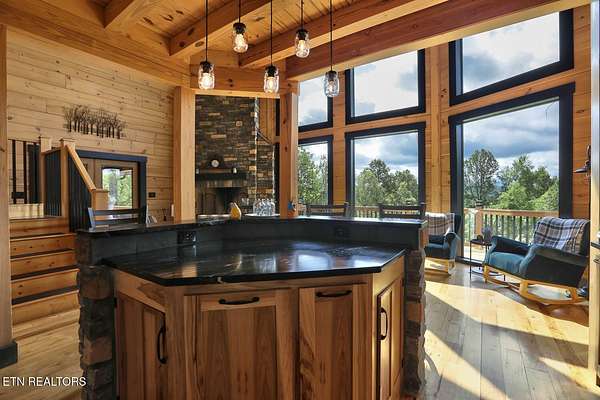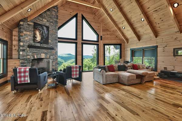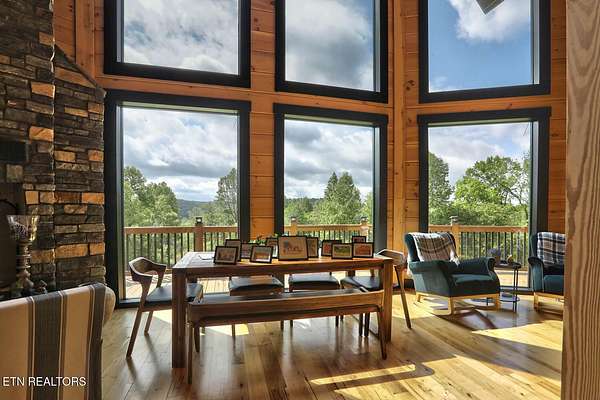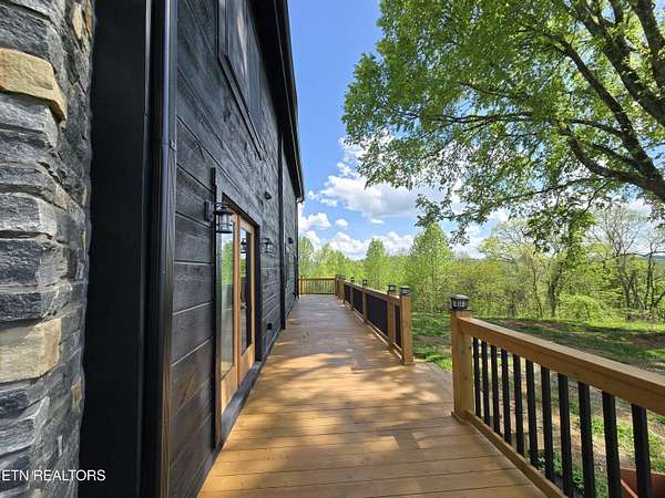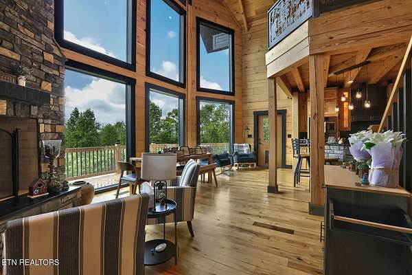 If you love the mountains of Northeast Tennessee, which is known for being among the most beautiful places in the country, and, if you're looking to find the very best in exquisite home design and finish qualities on ample private land, you'll want to see this property. The home sits on top and in the middle of 153.9 beautiful acres. With this property you have it all... pastures and hills, the creek and the pond, its woods, the river, and room to ride and hunt. Freedom is yours to use your land as you see fit. THE CABIN is one-of-a kind, and gorgeous! It is still like new. You will be amazed at the superior level of attention given to each and every choice and decision. The care that was taken to assure the best in quality workmanship is strikingly evident. This unique cabin is two levels, with tremendous ceiling heights and windows that are triple volume in the living room & back. The living area features a fabulous, true rock fireplace that rises up through the entire tri-level ceiling. The first floor is all about the living area, the owner's suite, and its amazing kitchen, which has all the best of Bosch equipment with custom cabinetry that has all of the extra features one could desire. An elegant half bath is nearby, and beyond, a full laundry and folding room. Further down the hall is the owner's suite, which occupies nearly half of the main floor. It is in the back. It features a large closet & an exceptional tub & shower room behind glass doors that fully seal. It has extensive features & fixtures & beautiful tile effects inside. Gorgeous artistic sinks are set in soapstone counters. Most impressive is the bedroom with its very large windows that look out to the mountains to the north. It is set privately to the back. It is larger than the living area & features a matching fireplace. It is all quite amazing really. Doors open out from there to a deck that wraps the entire home to the entry porch in the front. Stairs rise up from near the entry inside, to the second story that is lofted to look over into the living area and to the view the mountains to the south. The 2nd floor is fully open, except for the bathroom, with clear views from front to back, double volume ceilings & perfect overhead lighting. This room could be divided into separated rooms. The sellers preferred an open area for family to share. Special couches, chairs, and loungers are provided which convert to bedding. Actually 95% of all the existing furniture, including these items, are included in the sale. The bathroom shower in the loft area is special. It represents the mountains & the waterfall. Circular stairs lead to a mini loft that's above it all. The walls throughout the home are beautiful. The logs are solid square pine. The floors are hickory plank. A huge additional bonus feature is ''The TOWER'' which is a separate 3-story building adding another 935+SqFt. Stairs lead up to a room on each level to the top. It is plumbed in for a kitchen use and a bathroom. It is it is also roughly wired for electricity. A proposal is on file for a complete HVAC system. Most of the drywall is in. Otherwise, the interior remains for a buyer to finish in accordance with their intended use. The 3-CAR GARAGE on concrete slab sits at the end of the driveway. RIVER frontage: The property owns all the way down to the river on the other side of the road where there is a strip of river land to be enjoyed. It is over 1/2 mi long, & 53'-26' wide with some variance. It ends near the public boat launch. NOTE: The pictures tell the many thousands of words I would need to say to express all that is here. But, I am providing a full written description in 2 documents attached in the listing, which will also provide additional details about the land. Videos and a drone presentation will also provided. Ask your signed agent to provide these to you. Or, if you do not have an agent, then please contact our office and we will be happy to assist you in every way.