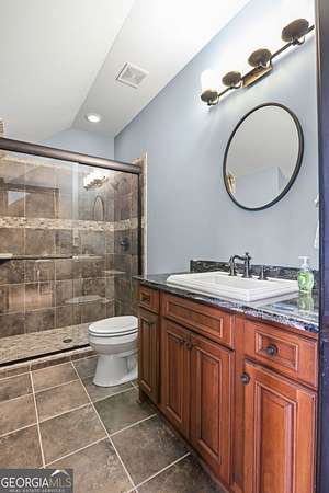 STUNNING AND PRIVATE ESTATE BUILT BY JOHN BYNUM HOMES, ON FOUR ACRES, WITH BEAUTIFUL LAKE VIEWS AND PEBBLETEC SALTWATER POOL. Only 30 minutes from Hartsfield Jackson International Airport. Gorgeous open lawn & wooded perimeter. Tremendous 5 Bedroom, 5.5 Bath home with a grand two-story foyer entrance, elegant, curved staircase, exposed beams, coffered ceilings, oak and travertine tile flooring, solid wood doors, glass doorknobs, high ceilings, built-in bookcases, custom cabinetry, marble and granite counters, paneled wainscoting, designer lighting and fixtures, wallpaper mural. Office off foyer with fireplace, custom ceiling, built-in bookcases, french doors. Dining room with coffered ceiling, crystal chandelier. Gorgeous kitchen with butler's pantry, walk-in pantry, exposed beams, island w/breakfast bar, custom backsplash, glass transoms, double refrigerator, Wolf range, Bosch DW, breakfast area with office nook. Laundry room storage closet, ample counter space and sink. Large office over garage w/ full bath and walk-in tiled shower. Tremendous great room/family room with gas FP, access to porch, custom-painted powder room. Spectacular owner's suite and wing with fireplace, tray ceiling, custom built closet with built ins and island, spacious spa-like bath with lake views, jacuzzi tub, tiled floors, walk-in tiled shower with rain shower, side showers and wand. Upper level has four big bedrooms with two large bathrooms. The basement is perfect for entertaining with custom wood paneling, copper tin ceiling, beautiful bar w/lighting display, copper sink, fridge, dw, family room with brick fireplace, built-in bookshelves and exposed beams, covered walkout patio to pool, stubbed theatre room, billiards area, steam room, hobby/craft room, great storage area and mechanical room. This home has been cared for with an attention to detail. A must see!