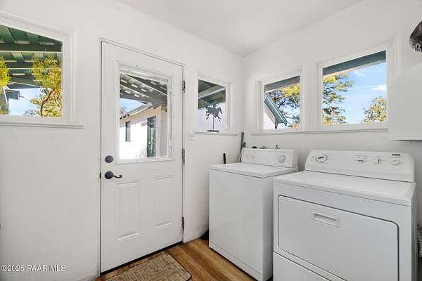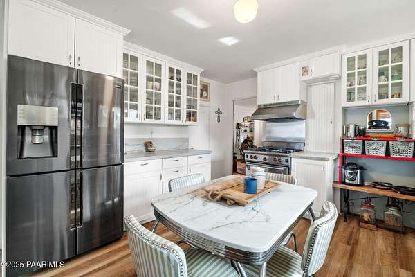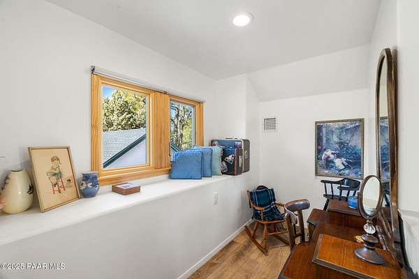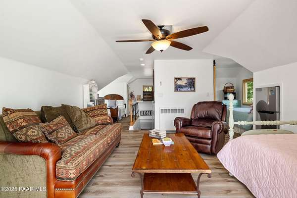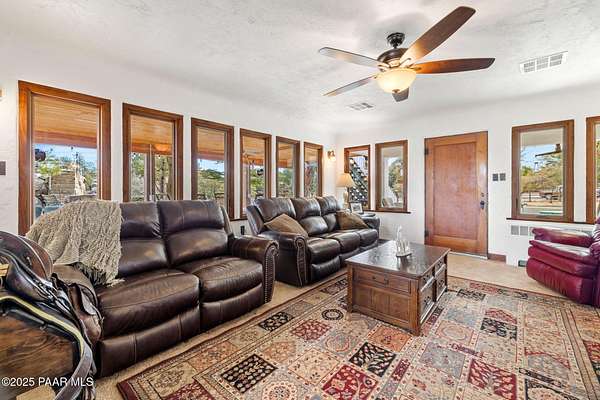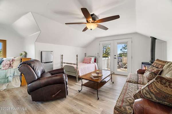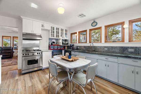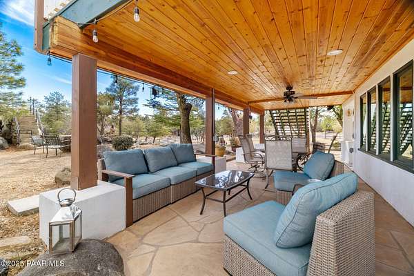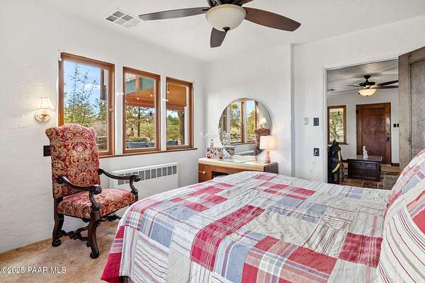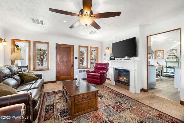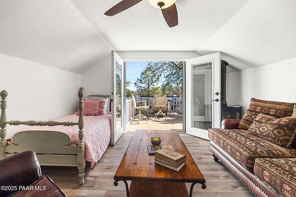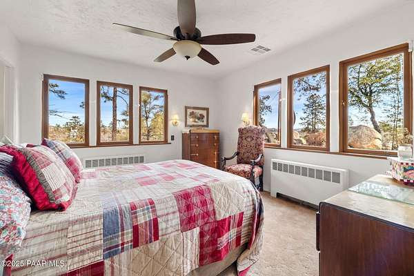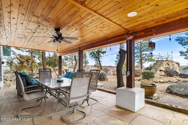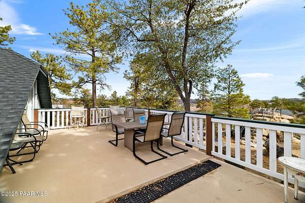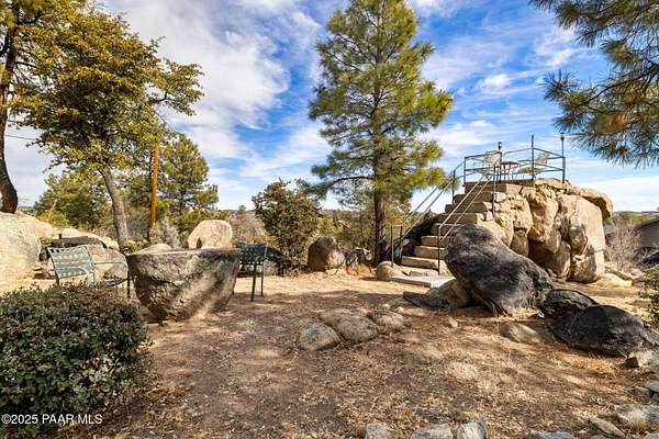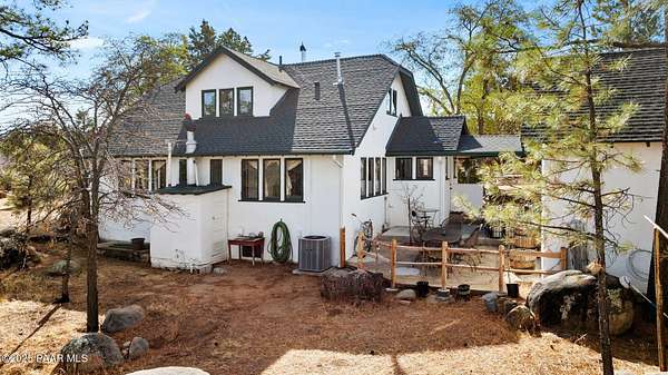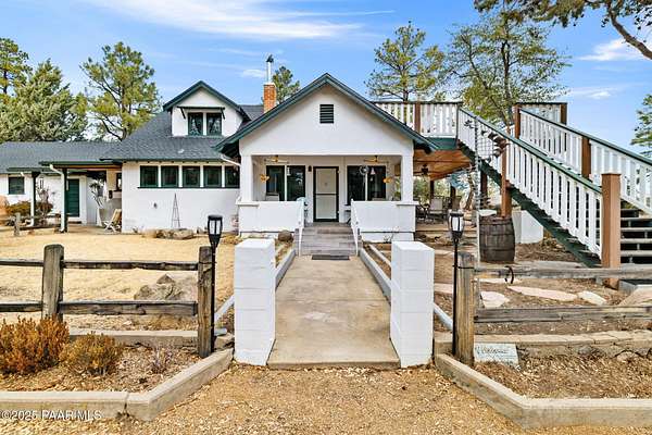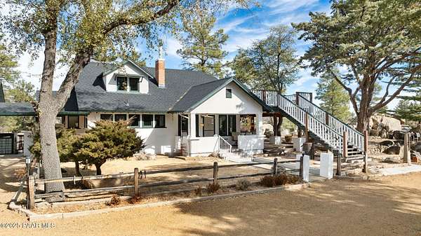 Welcome to one of a kind, Prescott's Schemmer Ranch, built in 1938 by the Schemmer family on 1.97 beautiful acres. This rare find takes you back in time to the World's Oldest Rodeo (just down the street), Historic Whiskey Row, and the Courthouse Square with BBQ's, and parties with friends, when they used to ride to town and tie their horses outside of the Palace Bar. This fenced and gated property offers privacy and spectacular views. Outdoor living at its finest. The house is filled with a warm and cozy feeling throughout. Brand new beautiful tile flooring in bedrooms and living room. There are 3 bedroom and 2 baths. 500 SF Garage, Lower and upper-level patios and decks. How about a 180 view of the San Francisco Peaks to Granite Mtn to Thumb Butte from your very own Lookout Rock.