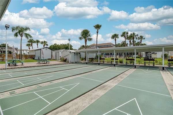 Premium RV Port Lot in Deer Creek RV & Golf Club! Discover your perfect retreat in the gated and guarded 55+ community of Deer Creek RV & Golf Club, centrally located in sunny Central Florida. This exceptional RV port lot, approximately 92' x 45', offers full hookups, including sewer, water, electric connections, and 50 amp service, ensuring all your comfort needs are met. Enjoy the added benefit of a convenient gazebo (with covers stored in the shed), and a well-equipped shed featuring a washer, dryer, refrigerator, and space to create a bunkhouse if air-conditioned. Rentals are allowed, presenting potential for passive income. The true gem of this property lies in the unparalleled amenities. Deer Creek RV & Golf Club boasts an impressive 18-hole golf course, a pro-shop, driving range with automatic teeing system, and a putting green. The community also features multiple clubhouses, pools, spas, a restaurant, tiki bar, shuffleboard, pickleball, tennis courts, and a vibrant social calendar with activities such as cruises, day trips, concerts, card games, and golf scrambles. Perfectly positioned near the intersection of Hwy 27 and I-4, this location provides easy access to major highways, shopping, dining, and entertainment. You're just minutes from Posner Park Shopping Mall, Disney World, SeaWorld, and a short drive to both east and west coast beaches. Experience affordable resort-style living in a friendly, active community. Don't miss out--schedule your visit today to discover all that Deer Creek RV & Golf Club has to offer!
