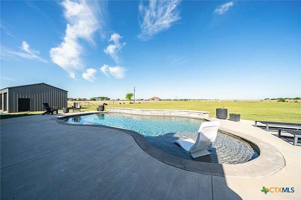 Experience the perfect blend of country tranquility and city convenience with this stunning Brandon Whatley Home situated on over 10 acres with NO CITY TAXES. This 4 bedroom, 2 1/2-bathroom home showcases thoughtful design built for large gatherings with its open and spacious layout. Immediately upon walking in you will be mesmerized by the view of the backyard starting with an in-ground pool overlooking the additional acreage in the backdrop. The study is located off the entry where you will find a blend of modern and country with the accent wall and stain grade barn door. The open kitchen layout features stainless steel appliances, custom cabinets, ample storage, large kitchen island and granite countertops. The master suite offers his and hers vanities with granite countertops as well as a walk-in shower, garden tub and large walk-in closet. The mudroom cabinet is an added feature to help with organization. Enjoy a home with no carpet-a dream for modern country living. Outside you will find an inground pool as well as an above ground hot tub with and extended patio perfect for entertaining. And for additional storage there is a 24x30 metal shop with two roll up doors. For added privacy there is an automatic gate upon entry. This home offers all you will need and more.