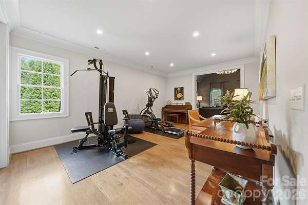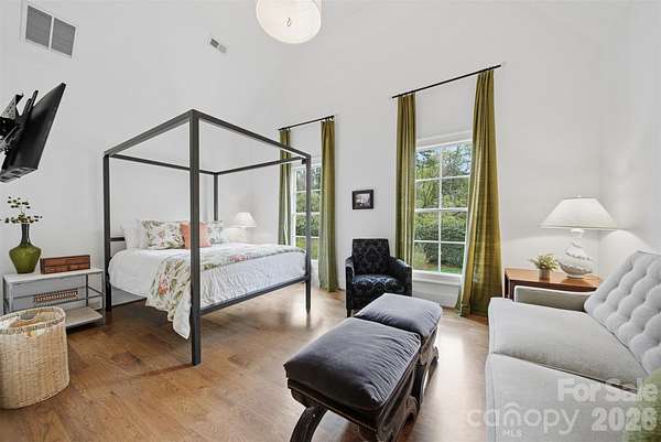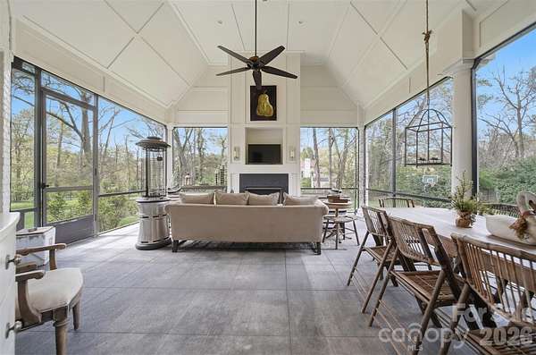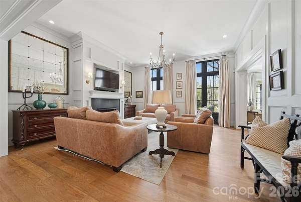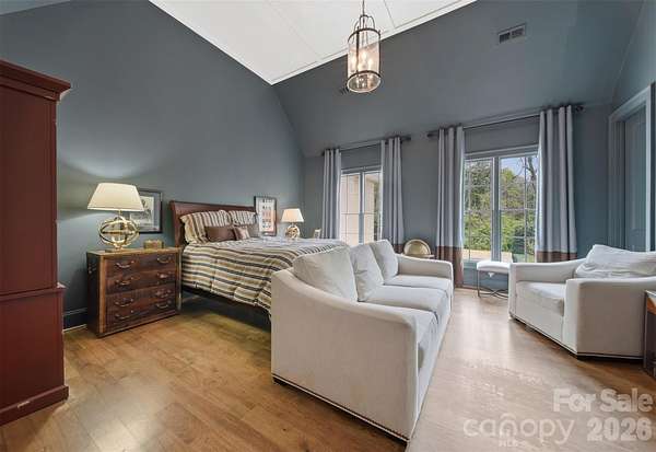 Step into a home where elegance meets everyday living-where every detail has been thoughtfully designed to evoke warmth, beauty, and timeless charm. Inspired by the romance and grace of Pride and Prejudice, this custom-built residence by Higgins Construction offers a lifestyle that encourages you to slow down, gather often, and truly feel at home. Nestled on over two private acres in the highly sought-after Pines II community, this property blends space, serenity, and refined living. Expansive windows fill the home with natural light, highlighting rich hardwood floors, soaring ceilings, and exquisite custom millwork that define its character. At the heart of the home, the great room invites connection-perfect for cozy evenings by the stone fireplace or lively gatherings that flow seamlessly into the chef's kitchen. Designed for both function and beauty, the kitchen features a keeping room, generous island, high-end Jenn-Air appliances, and thoughtfully designed spaces including a walk-in pantry and a beverage station for wine or coffee bar-where everyday meals turn into lasting memories. Just beyond, the screened-in porch serves as a true extension of the home-ideal for quiet mornings with coffee, alfresco dining, or relaxing evenings by the gas log fireplace while enjoying your favorite show. The main-level primary suite offers a peaceful retreat with spa-inspired finishes, a soaking tub, and dual walk-in closets for comfort and luxury. A side entry completes the main level with laundry area, a full bathroom, and custom built-ins. Upstairs, you'll find three spacious bedrooms-one with a private en suite, and two that share a Jack-and-Jill bath. One bedroom even features a charming hidden room. the 2nd level also offers a media room, office/workout area and additional storage. The third-floor bonus space provides endless flexibility, whether used as an additional bedroom, playroom, studio, or private escape-includes a full bath and a WIC. Outdoors, the expansive grounds offer endless opportunities-from tranquil walks beneath the trees to hosting unforgettable gatherings. A cottage style outbuilding adds even more versatility, perfect for hobbies, a workshop, or playhouse. This is more than a home-it's a place to celebrate life's everyday moments and special occasions alike. A place where elegance feels effortless, and each day feels just a little more extraordinary.