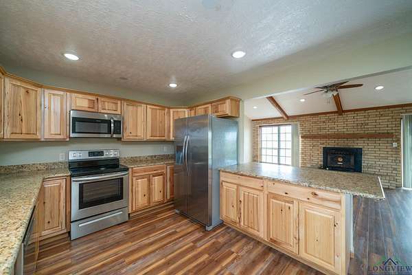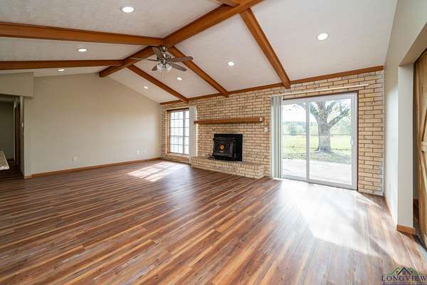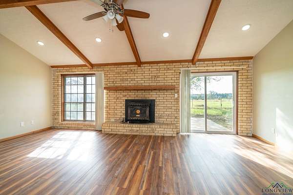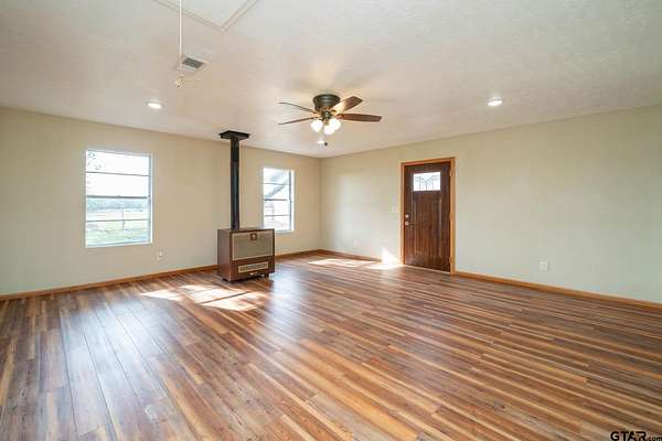 Welcome to your own slice of East Texas paradise on 57 sprawling acres! This beautifully updated 3-bedroom, 2.5-bath home offers modern comfort with a touch of country charm. The heart of the home is the newly renovated kitchen, featuring granite countertops, brand-new cabinets, updated fixtures, and sleek new appliances. With two spacious living areas, there's plenty of room for relaxing or entertaining. New flooring flows throughout the home, and the bathrooms have been tastefully updated to match the fresh, modern style. The HVAC system was replaced in 2022 for year-round comfort. Step outside to a fenced backyard--perfect for pets or kids--and enjoy the convenience of a detached, oversized garage complete with a workshop area and a loft for additional storage. Whether you're dreaming of a farm, a hunting retreat, or just wide-open space, this property has it all. Come experience the peaceful lifestyle this special property offers!