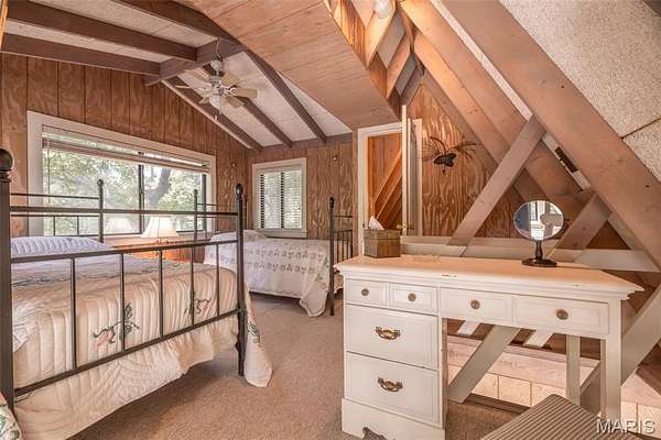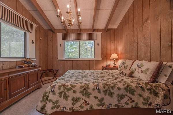 Charming Recreational Chalet Ideally located within walking distance to the Aspen Center, the beach, and the golf course, this inviting two-bedroom, two-bath recreational chalet offers the perfect blend of comfort, character, and convenience in the heart of Innsbrook. The main level features two bedrooms, including one with a unique see-through brick fireplace that opens to the great room--creating a warm, shared ambiance between both spaces. The spacious great room features vaulted ceilings, a beautiful brick fireplace, and expansive windows that lead to a newly stained, wraparound deck--perfect for entertaining or enjoying the peaceful, wooded setting. Upstairs, a generous sleeping loft offers additional guest space, along with a private second full bath featuring a Jacuzzi tub, ideal for relaxation. With a brand-new roof and fresh exterior paint, this well-maintained property is move-in ready and offers excellent potential as a weekend getaway or vacation home. Enjoy access to Innsbrook's premier amenities, including swimming, hiking, biking, fishing, boating, and championship golf--all just steps from your door. Please note: this home is for recreational use only and cannot be used as a full-time primary residence.