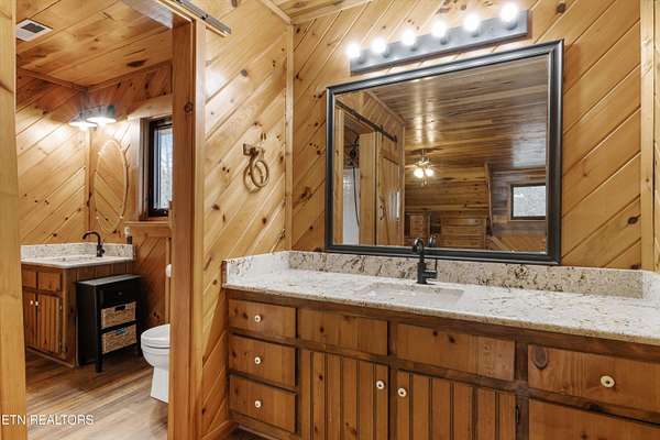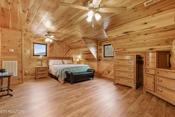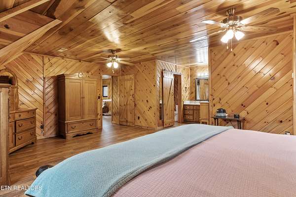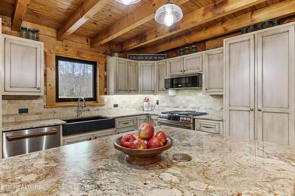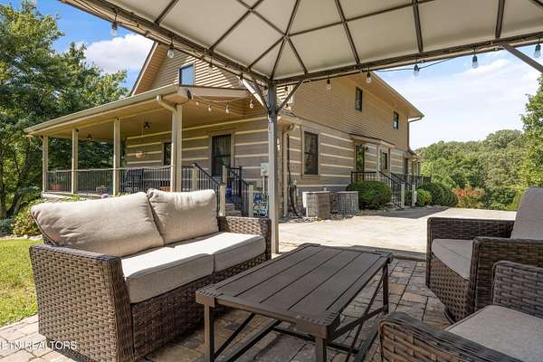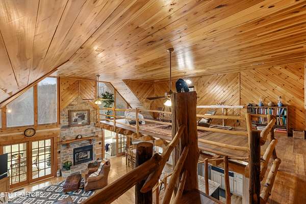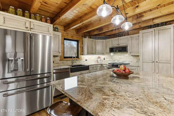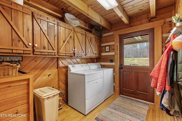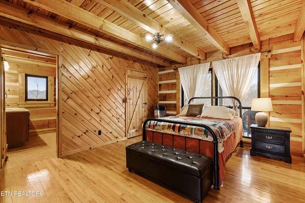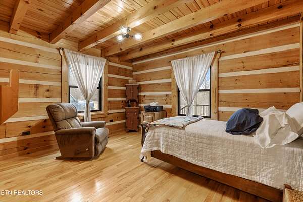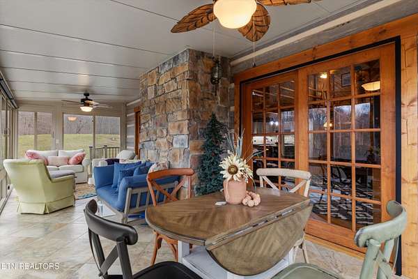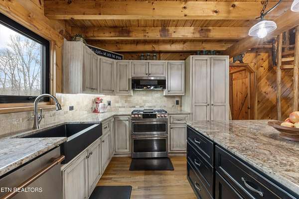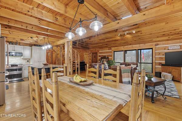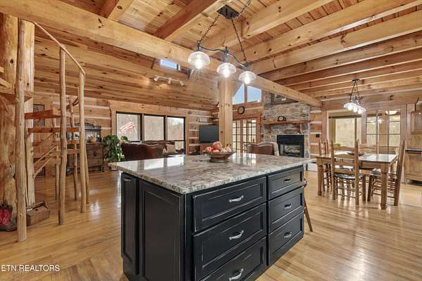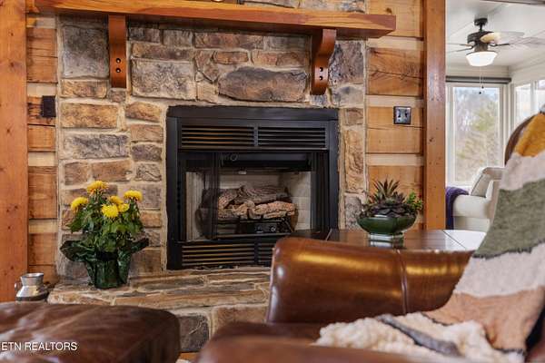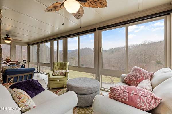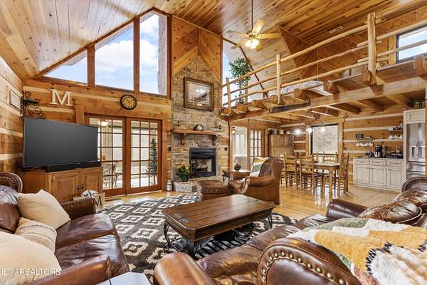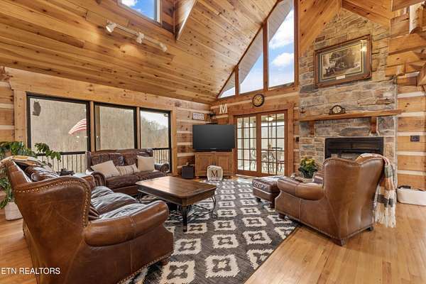 Looking for a log cabin with land in East Tennessee? This 45+/- acre property in Tellico Plains offers privacy, mountain views, and two homes. The main log home (built 1996, approx. 2,742 sq ft) features 3BR/2.5BA, an open floorplan, cathedral ceilings, stacked stone propane fireplace, and large windows. Kitchen fully renovated in 2023 with granite countertops, stainless appliances, farmhouse sink, island, and updated cabinetry. Main level includes 2BR, 1.5BA, and laundry with exterior access; loft den, bedroom, and full bath upstairs via spiral staircase. Covered front porch and enclosed sunroom provide year-round outdoor living. Unfinished walk-out basement with 1-car garage, storage, and secured space under porch for tools/equipment. Updates include well pump (2023), windows (2022), roof (approx. 7 years ago), and porch railings/stacked stone (2019). Second home (approx. 900 sq ft) is ideal for guests, rental, or multi-generational living. Property includes smokehouse and 6-bay implement shed. Minutes from downtown Tellico Plains, the Cherohala Skyway, and the Cherokee National Forest. Buyer to verify all information.