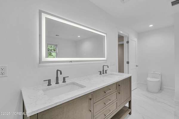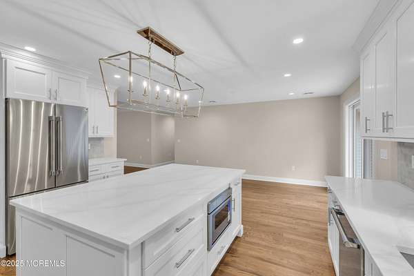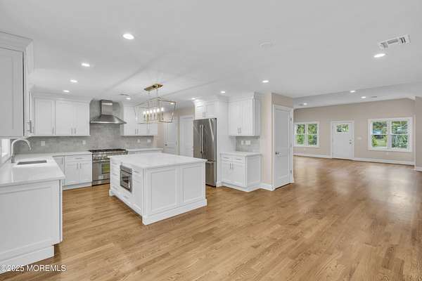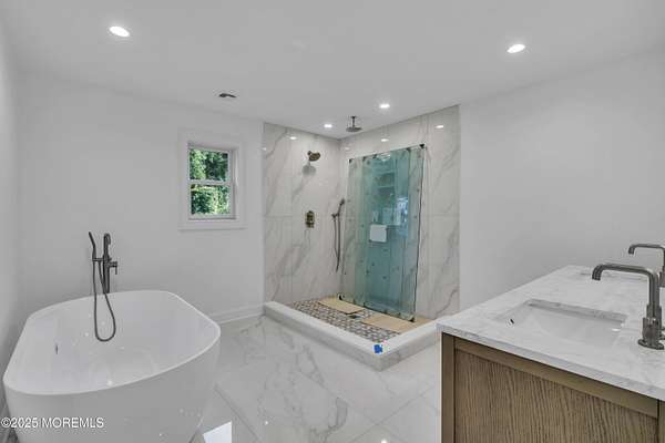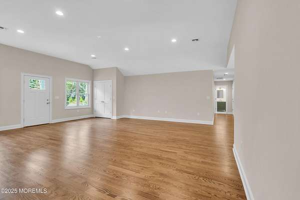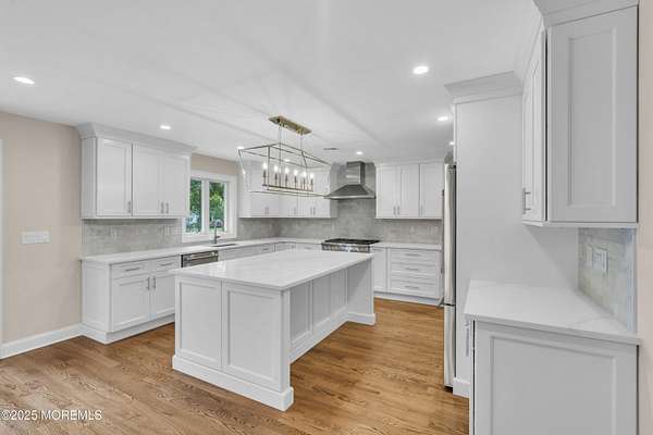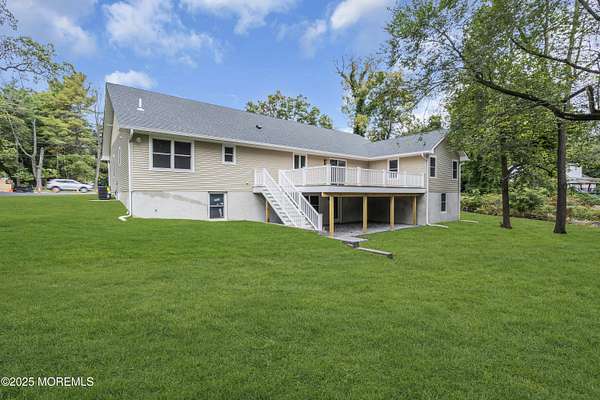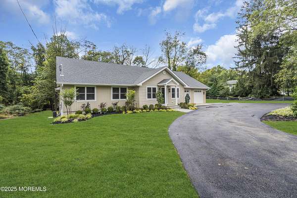 Welcome to this stunning newly constructed ranch-style home, where luxury meets functionality. This exquisite property boasts four spacious bedrooms and three full baths, all meticulously designed with no expense spared. As you step inside, you'll be captivated by the open-concept layout featuring soaring 9-foot ceilings and elegant custom moldings throughout. The heart of the home is the chef's kitchen, complete with gleaming quartz countertops, high-end Thermador stainless steel new appliances, and ample cabinetry that offers both style and practicality. Each bedroom is a tranquil retreat, featuring custom closets that maximize space and organization. The beautiful hardwood floors flow seamlessly throughout the home, adding warmth and sophistication to every room. The dining area opens up to an expansive trek deck, perfect for outdoor entertaining, while the walkout basement leads to a luxurious paver patio, creating an ideal space for gatherings and relaxation. Additional highlights include a circular driveway for convenience, a brand-new HVAC and air conditioning system for year-round comfort, underground sprinkler system and a walk-up attic for additional storage or potential expansion. Basement can be finished for an additional charge. Completing this remarkable home is a spacious two-car garage, providing both security and easy access. This beautiful residence is a true masterpiece that perfectly blends modern amenities with timeless elegance, making it a must-see for discerning buyers. Conveniently located near Red Bank and the Jersey Shore, this home is just a short drive to beautiful beaches, a variety of restaurants, and easy access to the Garden State Parkway and all major highways, making commuting a breeze. Don't miss the opportunity to make this stunning house your home. Schedule a showing today!