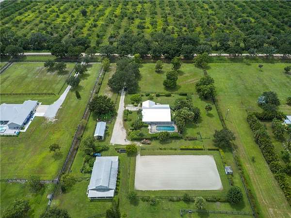 4.6 acre oasis nestled in a deed restricted community, surrounded by wildlife habitats, yet close to downtown and beaches. Five Custom landscaped, fenced & cross fenced pastures w/oak shaded areas. Barn w/6 12z12 stalls, shutters, tack & feed, 2 covered porches + outbuilding for farm equip & storage. Fenced arena, round pen, artesian well, whole house generator for all this plus 3/3 home w/metal roof, open floor plan, studio apt w/kitchenette & outside entrance. French doors to large screened lanai and pool, enjoy the sunrises and sunsets and nature's wonder. All handicap accessible.