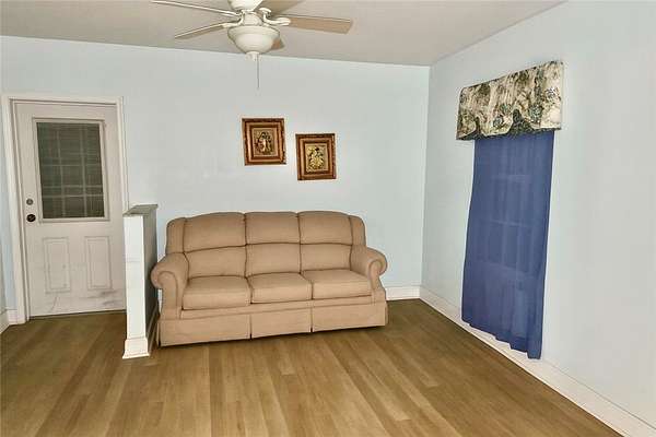 - Enclosed Porch, Fence, Propane Tank Owned, Rain Gutters