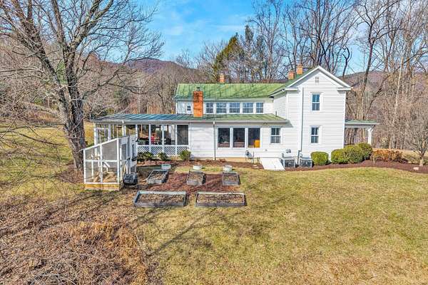 Tastefully remodeled 1900s farmhouse blends timeless charm with thoughtful modern updates. Nestled on 3.5 acres, this beautiful home offers the perfect blend of character, comfort and privacy. Inside you will find five spacious bedrooms and three and a half bathrooms, with a main level primary suite and first floor laundry. The inviting covered front porch offers stunning mountain views while a spacious screened in porch out back provides a perfect space for entertaining friends and family in every season.Outside, the 3.5 acre property privacy and room to garden and enjoy the peaceful surroundings. A detached garage offers excellent space for a workshop, hobbies storage or additional parking. If you've been looking for historic character & modern conveniences, this home has it all.