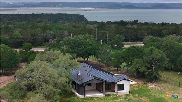 Discover modern elegance and tranquil Hill Country living in this stunning 3,319 sq ft custom-built home by KCE Homes, nestled in the prestigious gated community of South Shores Estates. Backing directly onto the shoreline of Stillhouse Hollow Lake, this residence offers an exceptional blend of luxury, comfort, and natural beauty. With 4 generously sized bedrooms, 3.5 bathrooms, and a dedicated office, the home is thoughtfully designed for both everyday living and upscale entertaining. Exquisite custom woodwork flows throughout, while soaring ceilings with exposed wood beams extend from front to back, creating a bright and open atmosphere filled with natural light. The chef's kitchen is a true centerpiece, featuring custom rift-sawn oak cabinetry, a quartz waterfall island, panel-ready Bosch appliances, designer lighting, and an expansive walk-in pantry. Unwind in the spa-like primary suite, complete with a sleek designer shower with glass barn doors and a luxurious freestanding tub. Entertain guests in style around the striking 60" electric fireplace in the living room, or enjoy serene outdoor gatherings by the stone fireplace on the back patio-framed by majestic oak trees and unspoiled lakefront views. Set within a quiet gated community surrounded by mature oaks and scenic trails, this remarkable home delivers the perfect balance of refined luxury and peaceful nature.