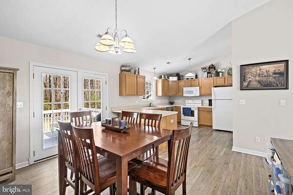 Country livin' at its finest! Super spacious & charming 3 bedroom, 2 bath rambler on 2 LEVEL acres! Great location... private yet convenient. The newer LVP flooring that runs throughout most of the home will dazzle you ... and easy maintenance! The huge living room features a grand cathedral ceiling with a beautifully color-painted accent wall. Dining area with decorative fireplace is a great space that is open to living room and kitchen. French doors to nicely appointed deck. 2 of the 3 large bedrooms boast LVP flooring and you won't believe the size of the 2 bathrooms ... WOW! Cute front porch for watching nature and glass storm door to watch from the warmth of inside. The land is FABULOUS! Level, much of it cleared but a wonderful tree buffer all the way around for extra privacy. And last but definitely not least ... the incredible WORKSHOP/SHED with ELECTRICITY that completes the parcel. Don't miss this one - it's 5 STAR