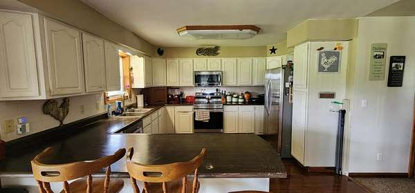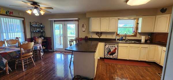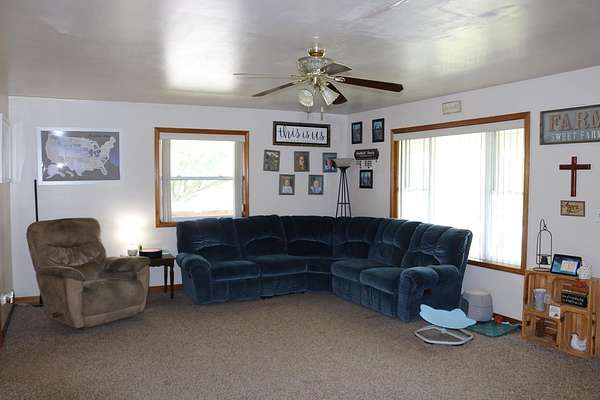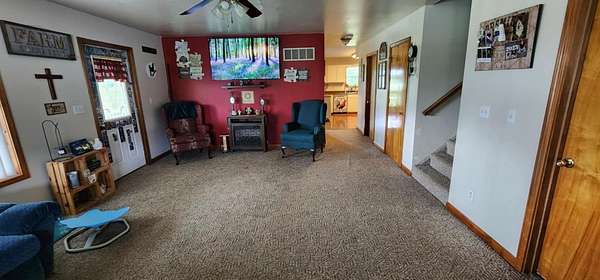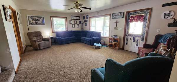 Charming Farmhouse on 7.91 Acres-Seller giving an allowance of $3500 for upgrades/repairs. Welcome to this spacious farmhouse offering the perfect blend of comfort, functionality, and country charm. Set on nearly 8 acres of rolling meadows, this property is ideal for hobby farming, multi-generational living, or simply enjoying the serenity of rural life. Inside, you'll find 6 bedrooms with potential for more, 3 full bathrooms, and a convenient half bath. The main floor boasts 3+ bedrooms and a laundry room, offering one-level living with plenty of flexibility. With covered porches wrapping around three sides of the home, you can relax and enjoy stunning views in every direction. Step outside to an entertainer's dream: a rear patio with fire ring and stocked pond. For the hobbyist, car enthusiast, or entrepreneur, the property includes two oversized detached garages (40x24 and 23x23) with electricity and workshop space, a 30x60 pole barn, plus additional outbuildings