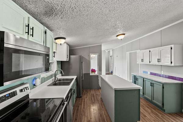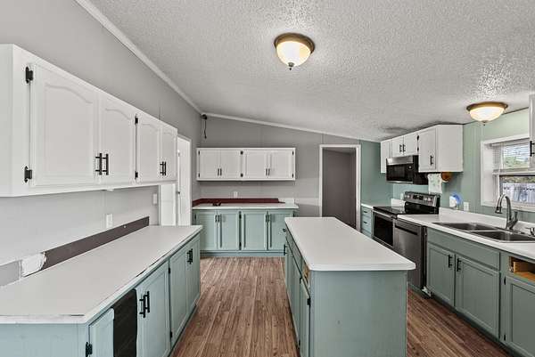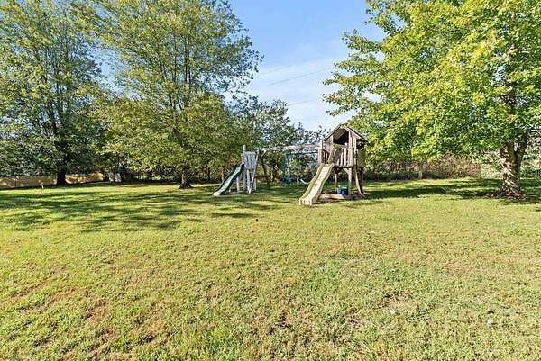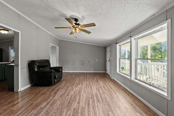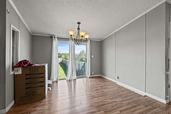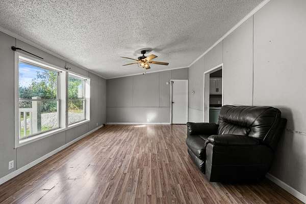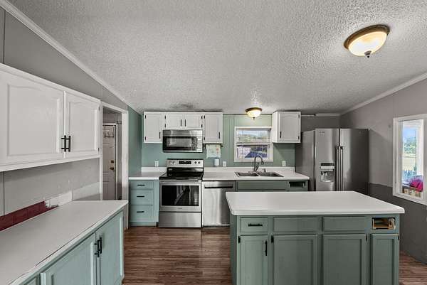 Est $974/moSpacious 4 bedroom, 2 full bath ranch home situated on 1.5 acres with no restrictions! Enjoy a partially fenced front and backyard, perfect for pets or play. Inside, the large living room features laminate flooring throughout the main areas. The kitchen offers a center island, brand new stainless steel appliances, and a dining area just off the side. Split bedroom design includes a primary suite with walk-in closet and full bath (needs finishing), plus three additional generous bedrooms and another full bath. Flat lot with storage building (needs some TLC) adds extra potential.
