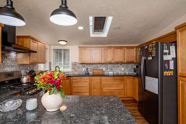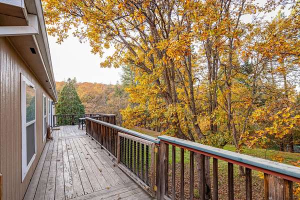 Discover peaceful country living on 3.5 acres with stunning hillside views, a creek that runs through the property, and beautiful areas to walk. This spacious 4-bedroom, 2-bath triple-wide manufactured home offers 1,942 sq. ft. of comfortable living with a split floor plan. The kitchen was fully remodeled in 2020, featuring stainless steel appliances, gas stove, and granite countertops. The inviting living room is perfect for relaxation and opens to a beautiful deck overlooking the backyard. The primary suite includes a large walk-in closet and a tiled walk-in shower. An oversized detached 2-car garage includes a generous insulated workshop of approximately 672 sq. ft.--ideal for hobbies, storage, or projects. Don't miss the new roof that was installed in 2023 and ample space for RV parking.